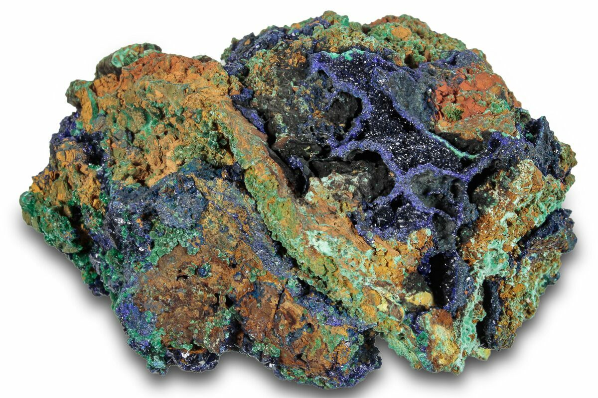 Azurite and malachite often form in union with each other, since their chemical makeup is very similar. In fact, the presence of more or less water in the location of formation is enough to determine whether an abundance of malachite over azurite, or vice-versa, will accumulate.