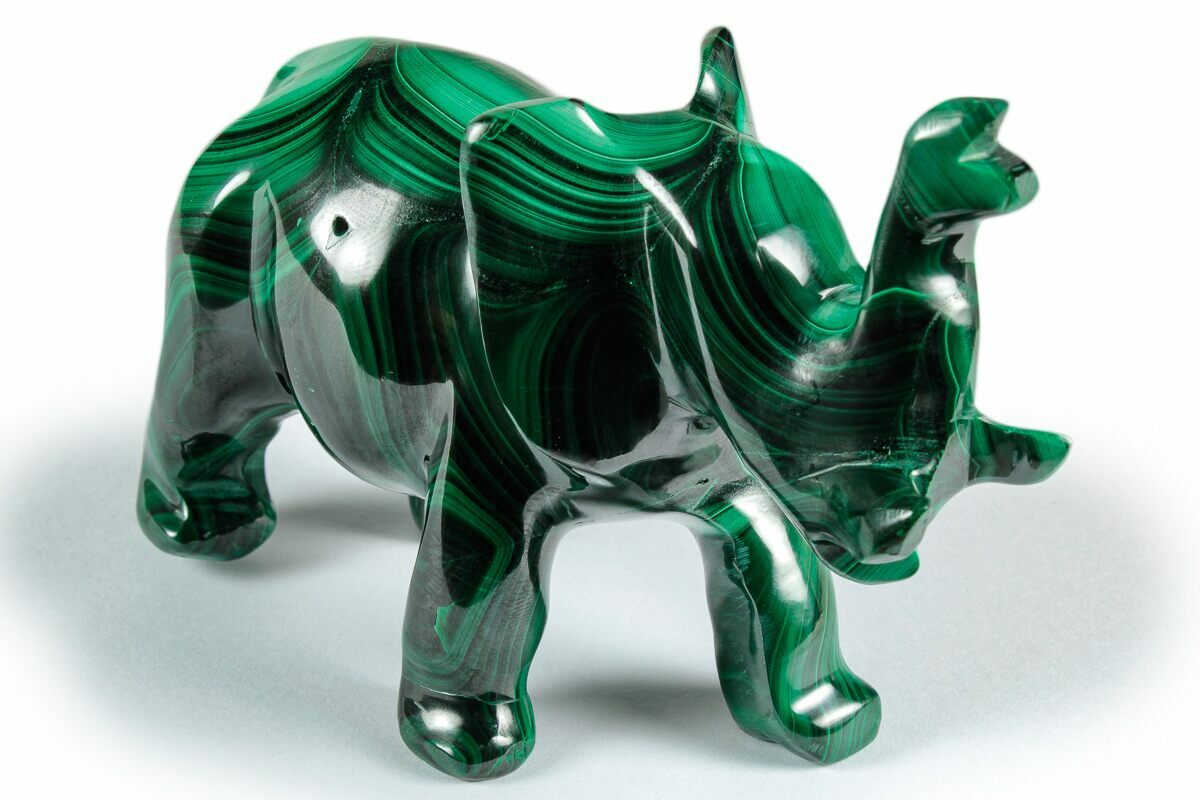 4.05" Polished Banded Malachite Elephant Carving - DR Congo
