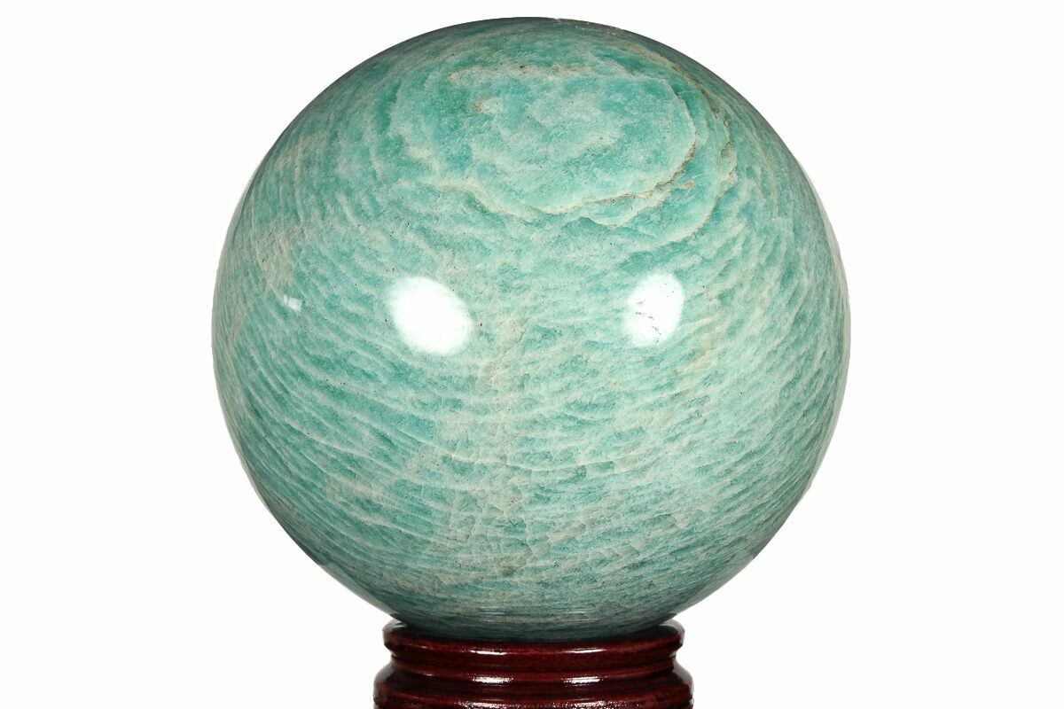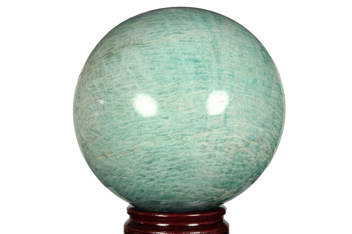 amazonite crystal sphere from Madagascar. The polish of the sphere really amplifies the color that this mineral displays. Areas of the sphere display some very noticeable chatoyancy and the color is darker than most of the amazonite from Madagascar.