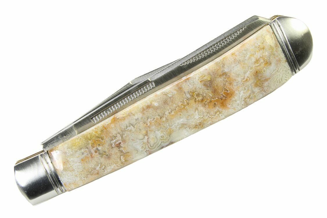 4.1" Pocket Knife With Lace Agate Inlays & Matching Base