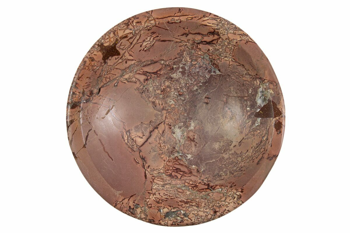 This is a beautiful, 4.1" wide decorative dish crafted from "Saharan desert jasper", also known as "Moroccan mookaite", collected in Morocco. The jasper bears a mixture of sienna hues and has been lightly polished to highlight the patterns and colors.