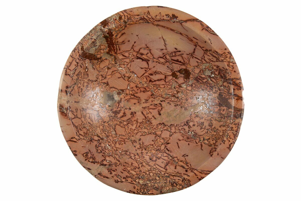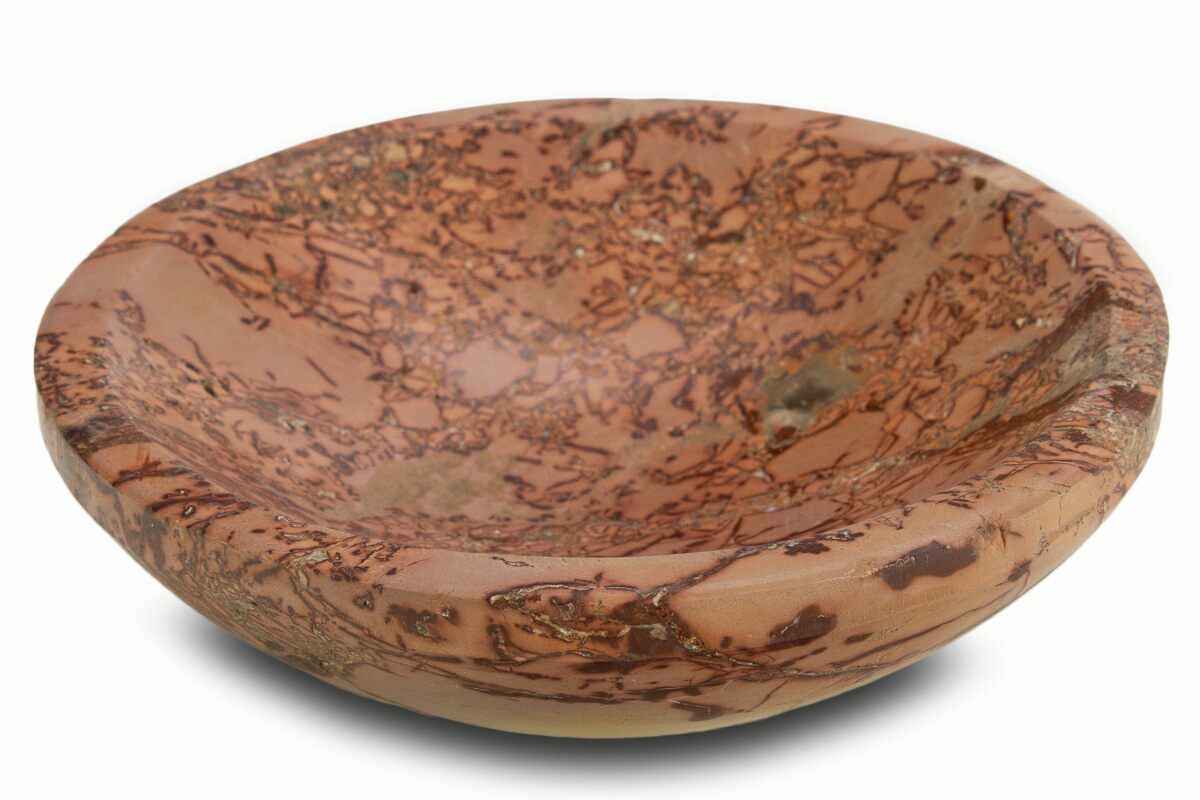 This is a beautiful, 4.1" wide decorative dish crafted from "Saharan desert jasper", also known as "Moroccan mookaite", collected in Morocco. The jasper bears a mixture of sienna hues and has been lightly polished to highlight the patterns and colors.