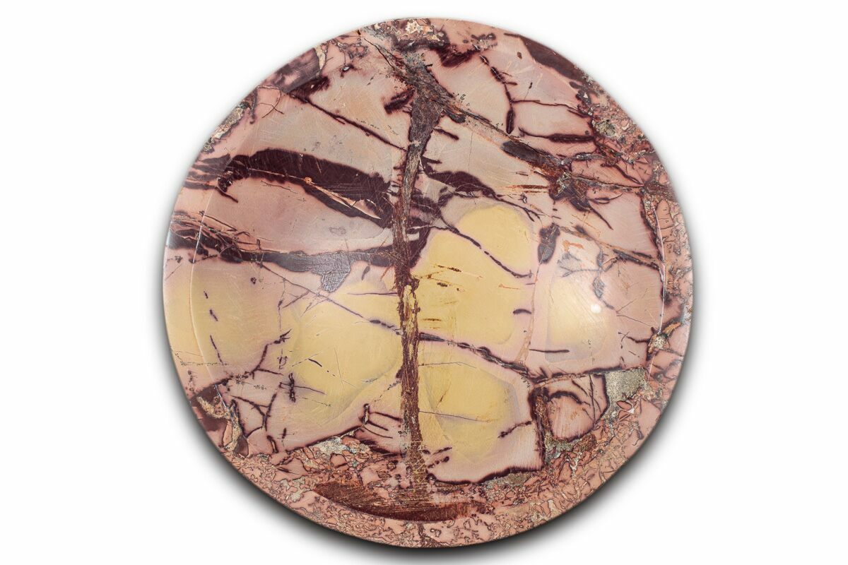 This is a beautiful, 4.1" wide decorative dish crafted from "Saharan desert jasper", also known as "Moroccan mookaite", collected in Morocco. The jasper bears a mixture of sienna hues and has been lightly polished to highlight the patterns and colors.