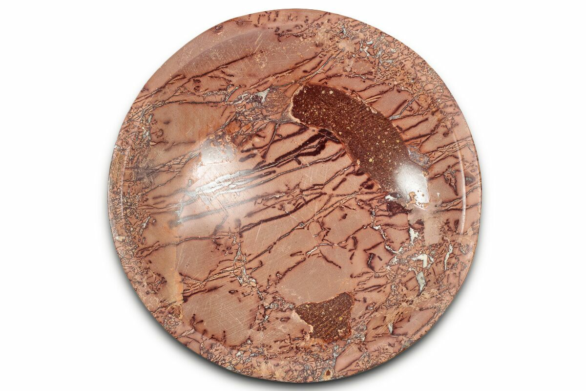 This is a beautiful, 4.1" wide decorative dish crafted from "Saharan desert jasper", also known as "Moroccan mookaite", collected in Morocco. The jasper bears a mixture of sienna hues and has been lightly polished to highlight the patterns and colors.