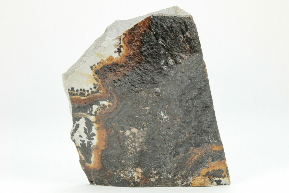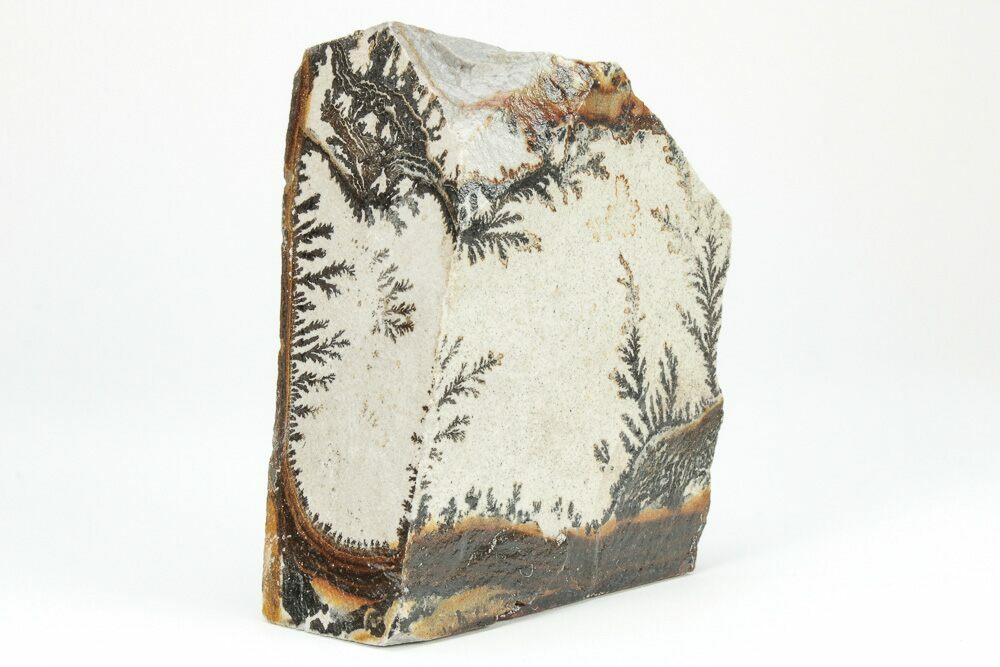 This is a gorgeous 4.15" section of limestone with manganese dendrites on the surface. While they look like plant fossils they are mineral formations, that often occur between layers of sedimentary rock.