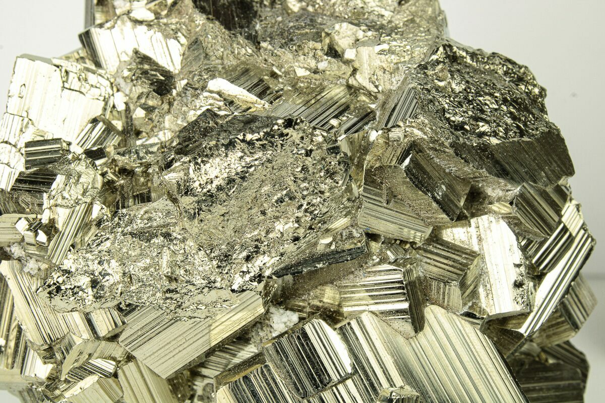 This is a nice cluster of incredibly lustrous, striated pyrite crystals, collected from the Huanzala Mine in Peru. The specimen measures 4.15" wide and shows excellent color and quality.