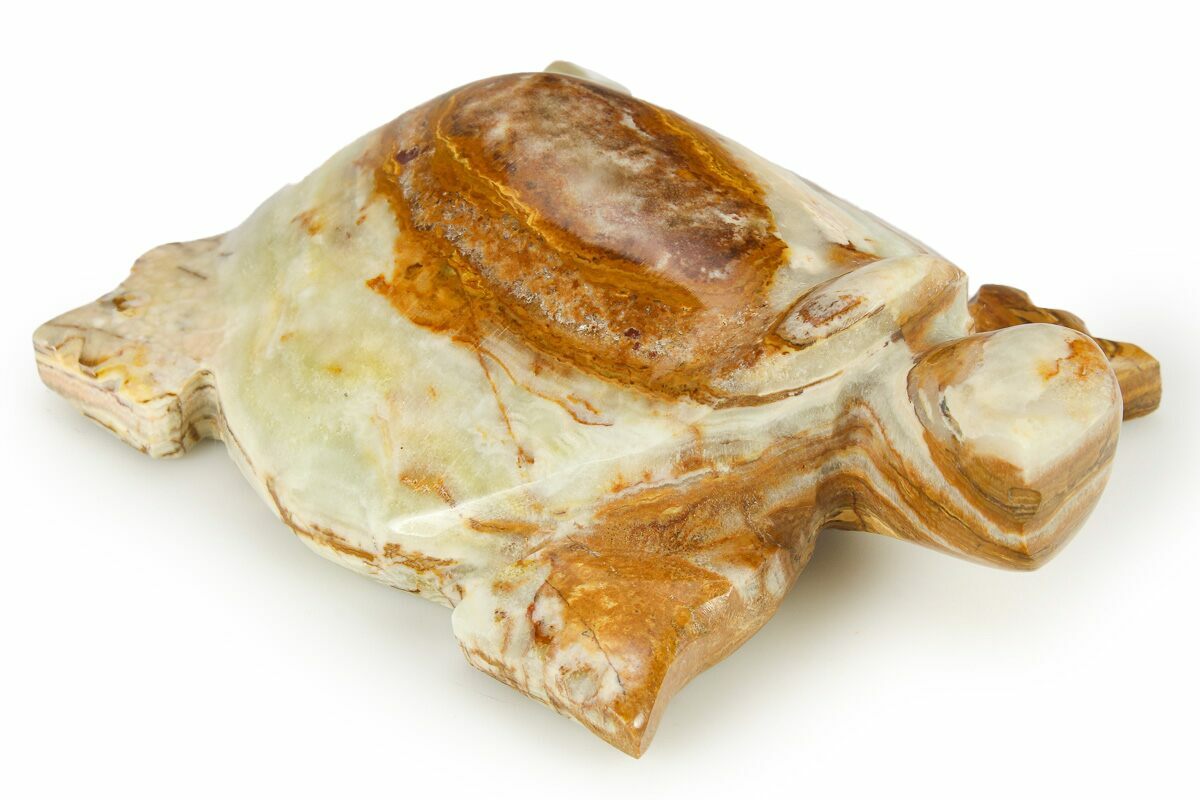 4.2" Carved Green Banded Calcite Turtle - Pakistan