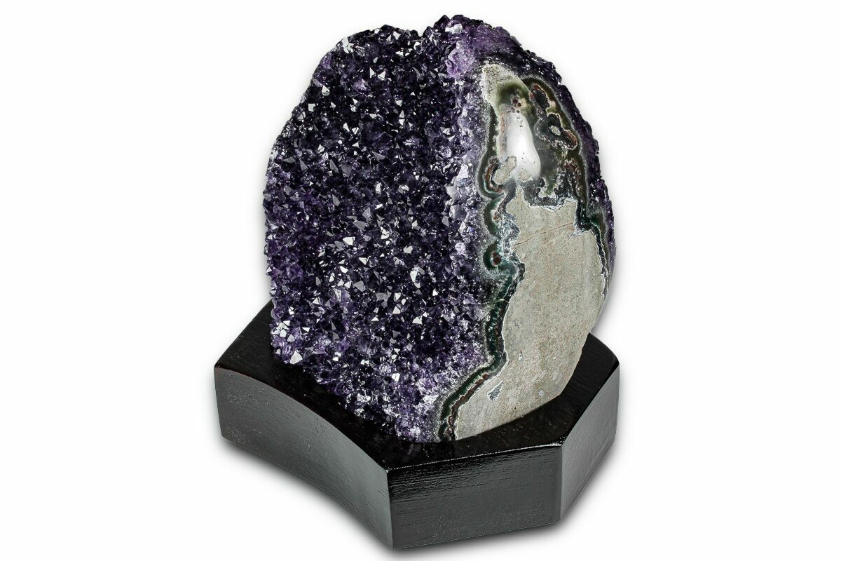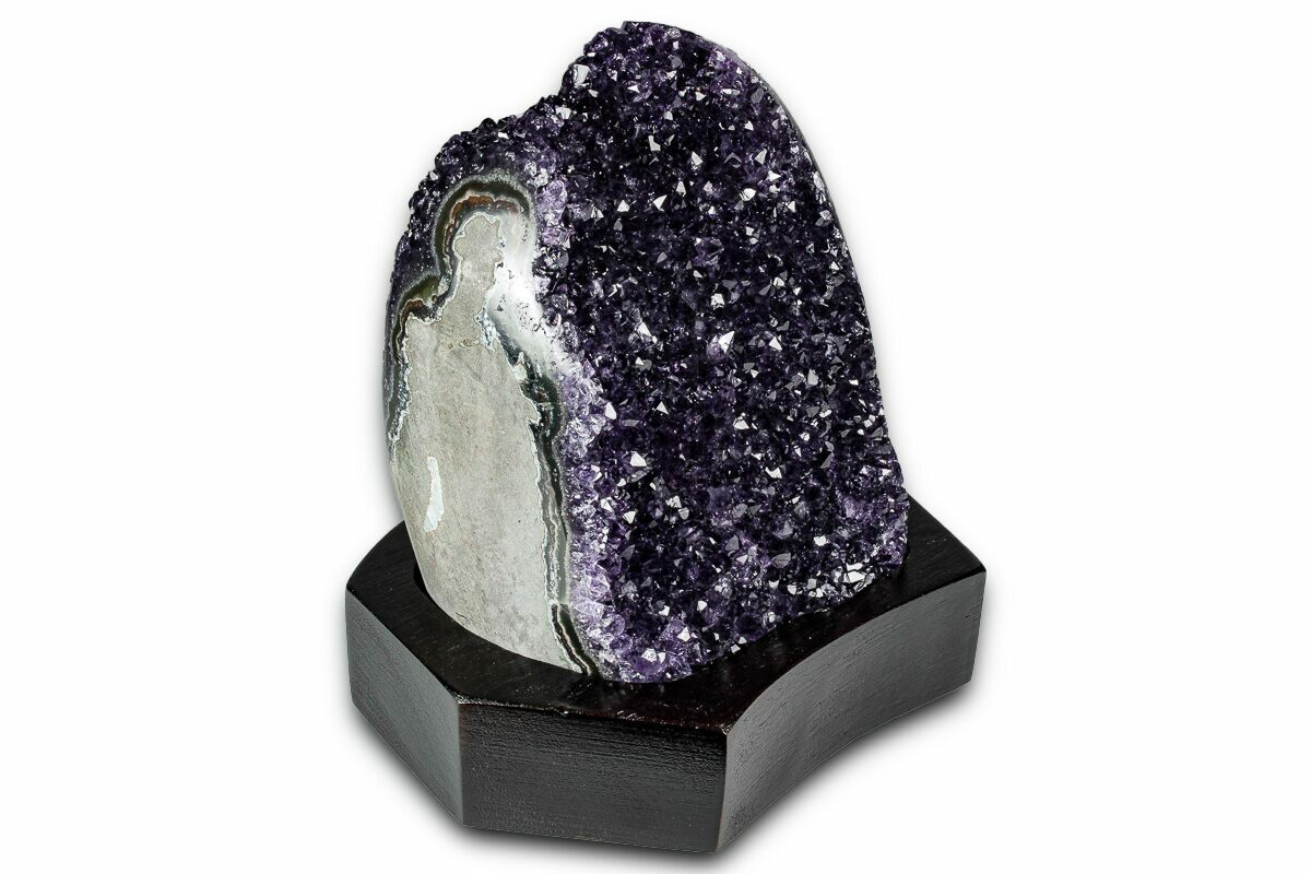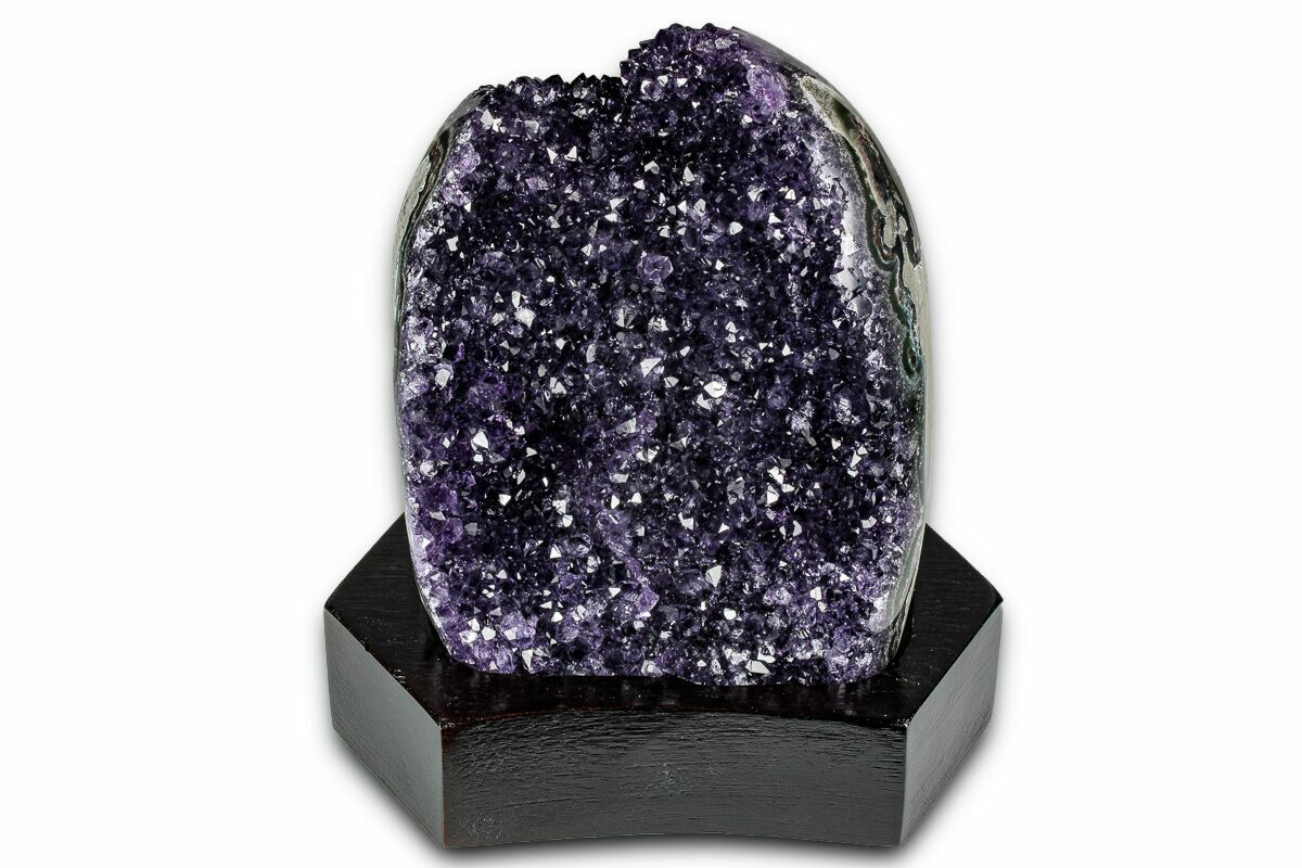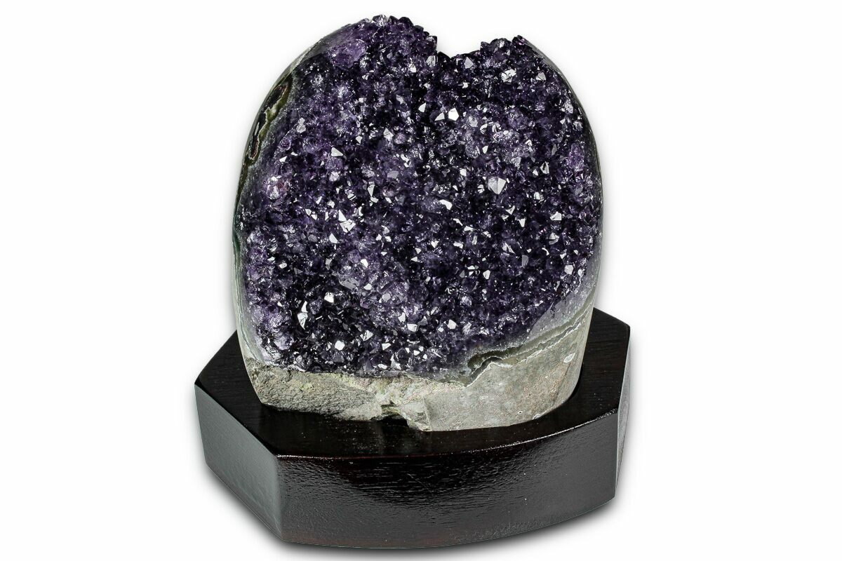 4.2" Deep Purple Amethyst Geode With Wood Base - Uruguay