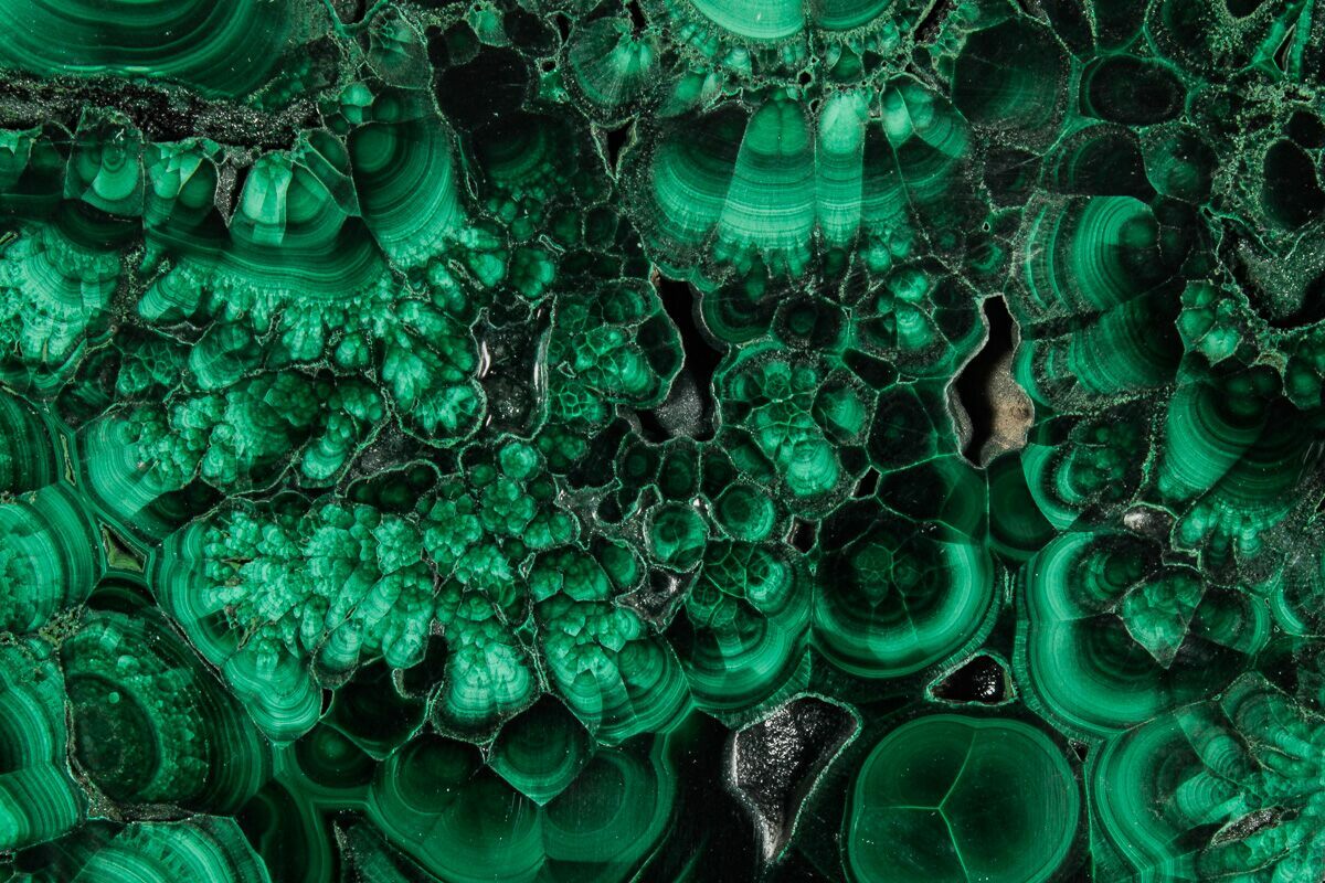 Malachite results from the weathering of other copper ores, and is very often found associated with other copper-based minerals such as azurite and chrysocolla. It can be found in copper deposits around the world, but the Democratic Republic of the Congo is the primary source for polished malachite and mineral specimens.