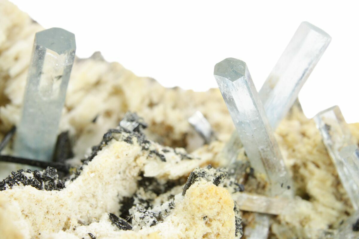 4.2" Gemmy Aquamarine and Schorl Crystals on Feldspar - Namibia