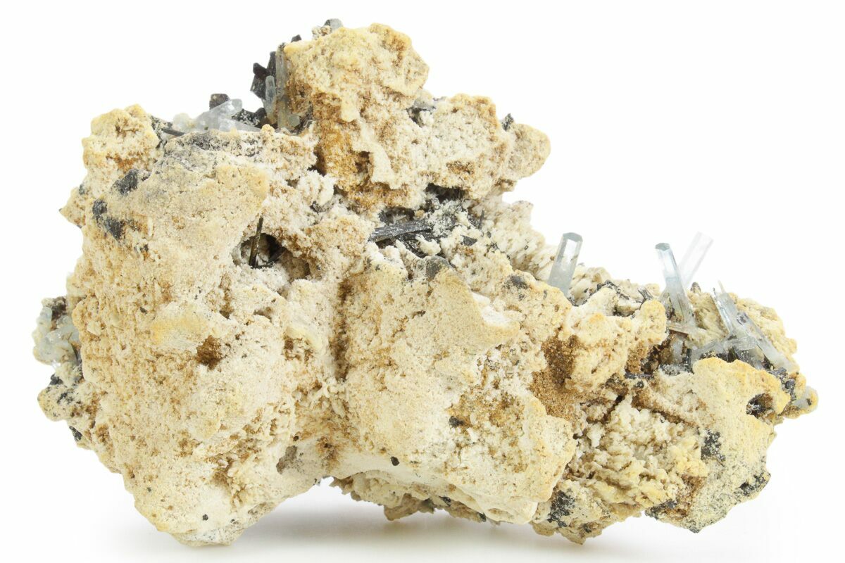 Aquamarine crystals from Namibia are prized for their cool, ocean-blue colors, excellent transparency, and attractive crystal shapes. Most specimens come from granitic pegmatites in the Erongo region, where beryl crystals grow slowly in mineral-rich pockets, allowing them to develop clean prismatic forms and well-defined terminations. Color ranges from pale, icy blue to richer blue-green hues, with the intensity controlled by trace amounts of iron within the crystal structure.