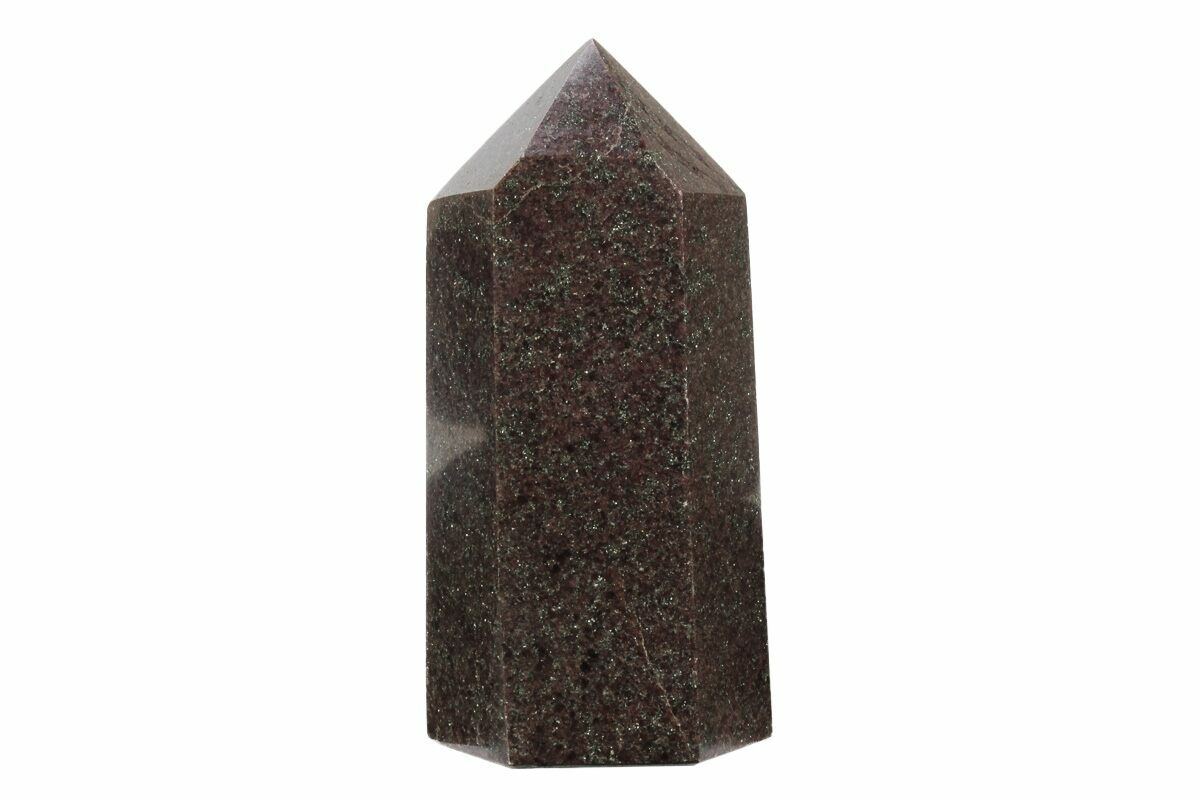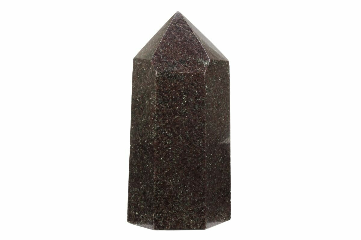 This is a 4.2" tall section of garnetite that has been polished into the shape of a six sided tower. The base of the specimen has been cut flat for presentation and the entire specimen is polished to a glossy finish.