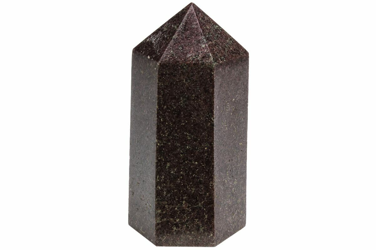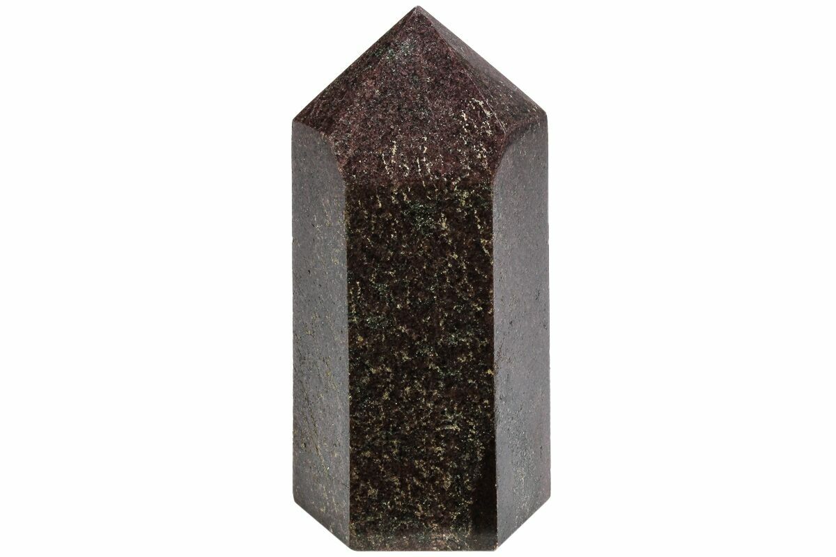 This is a 4.2" tall section of garnetite that has been polished into the shape of a six sided tower. The base of the specimen has been cut flat for presentation and the entire specimen is polished to a glossy finish.