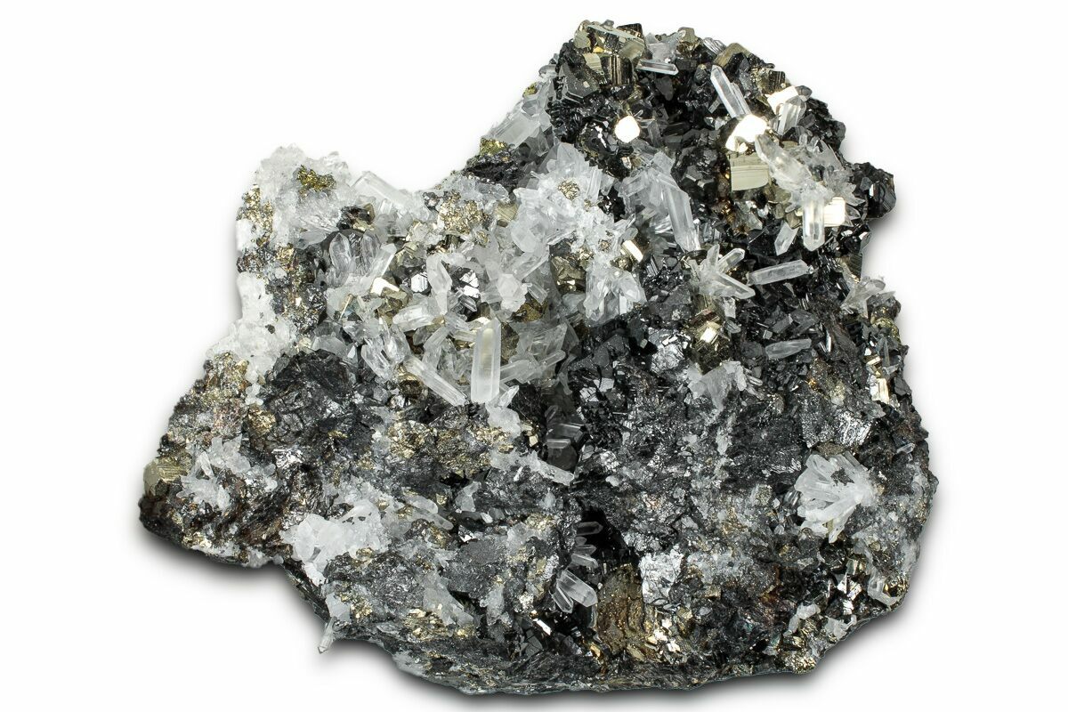 4.2" Quartz and Pyrite Crystals on Sphalerite and Chalcopyrite - Peru