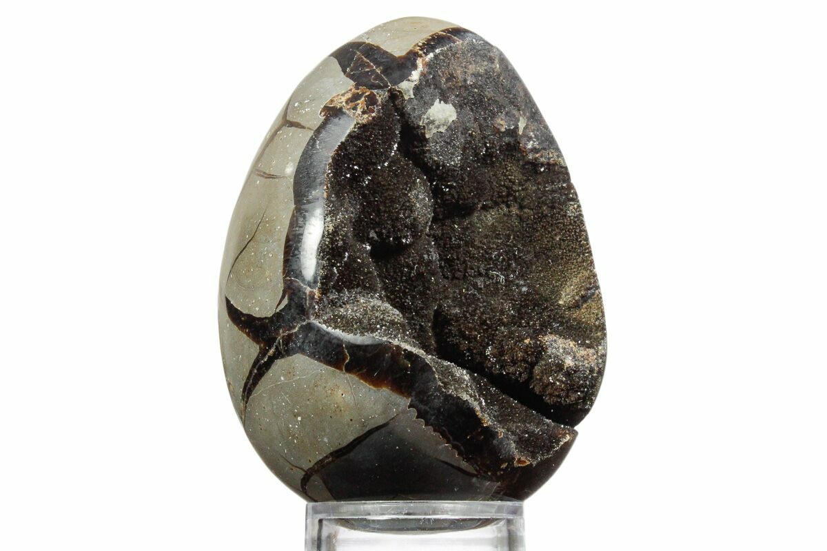 4.2" Septarian "Dragon Egg" Geode - Sparkly Black Crystals