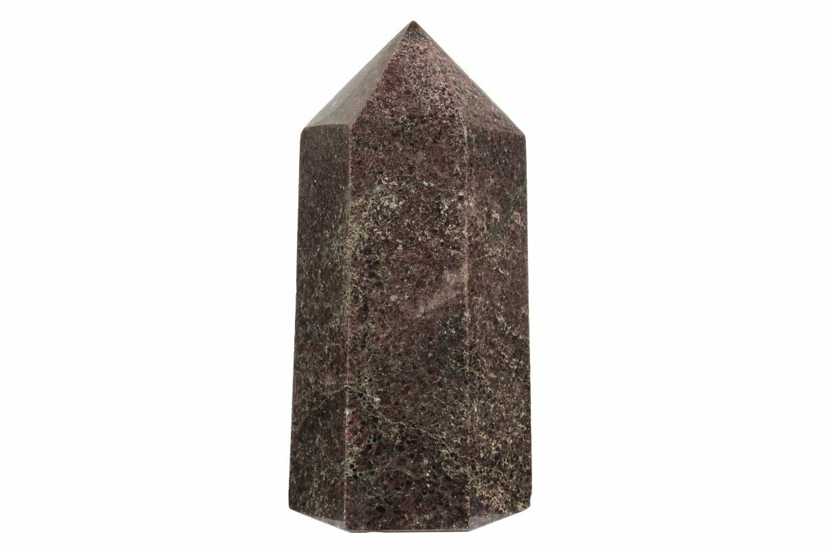 This is a 4.25" tall section of garnetite that has been polished into the shape of a six sided tower. The base of the specimen has been cut flat for presentation and the entire specimen is polished to a glossy finish.