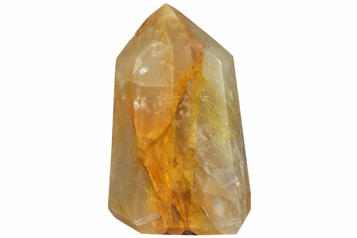 This is a beautiful 4.25" tall tower of hematite quartz that has been hand cut and polished to a glossy finish. The coloration is wonderful, bearing deep orange coloration (iron oxidation) within the healed fractures.