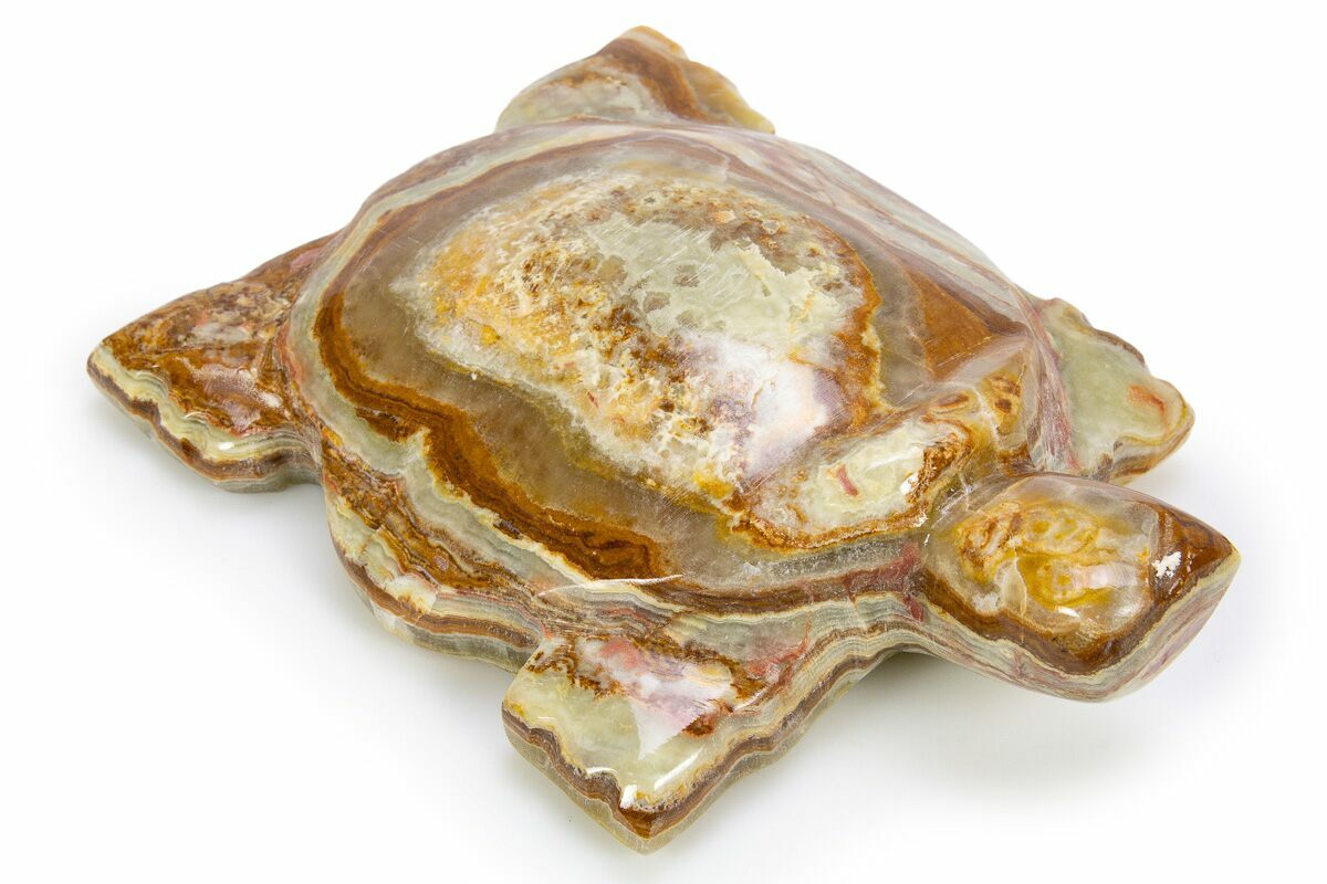 4.3" Carved Green Banded Calcite Turtle - Pakistan