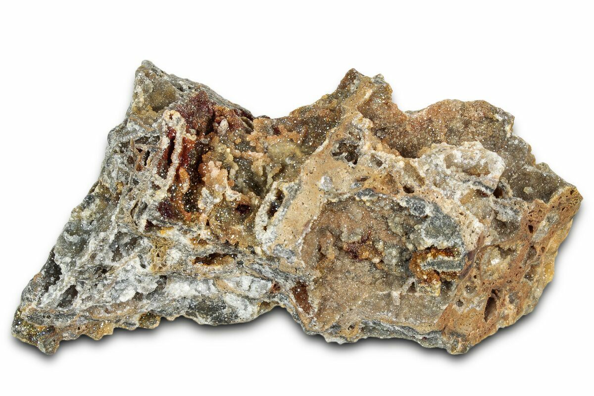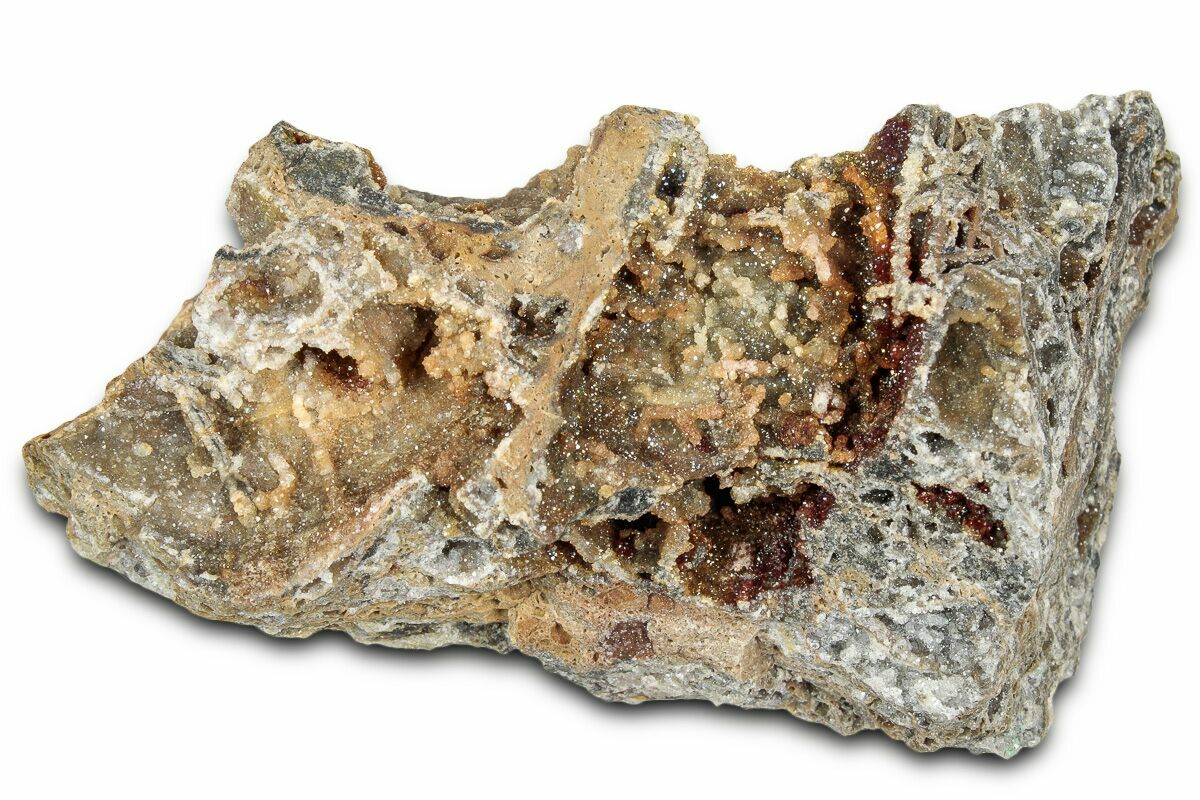This is a new mineral find out of Turkey. It's a 4.3" wide section of matrix with pockets encrusted in natural druzy citrine quartz crystals. The most likely location of collection is the Göynük mine in the Kütahya Province of Turkey, however we're not certain about this.