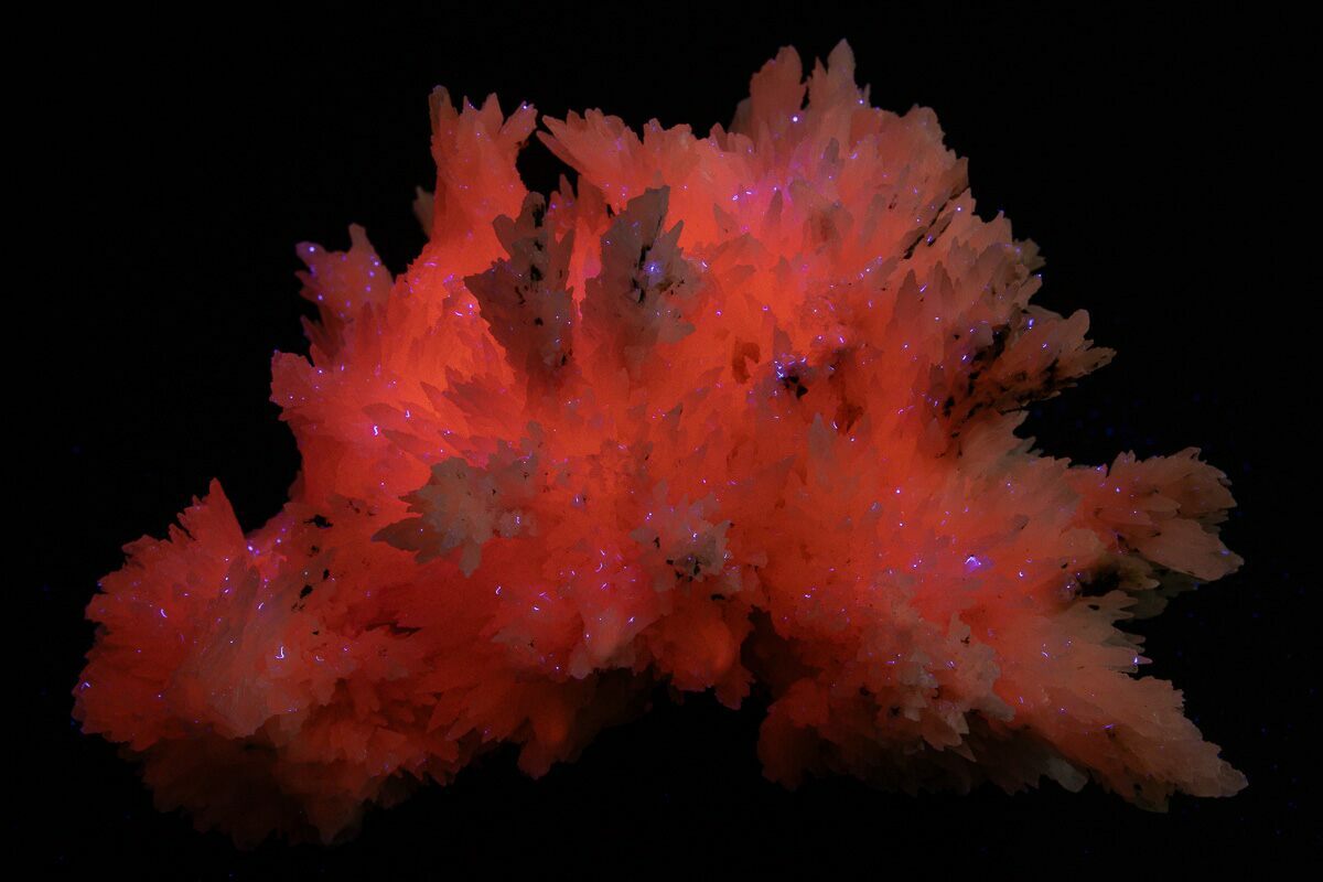 Manganoan calcite, also known as mangano calcite or pink calcite, is a manganese-rich variety of calcite, giving it a distinctive pink color that ranges from soft pastel to vibrant rose hues. The presence of manganese not only colors the mineral but often creates fluorescent qualities under UV light, where manganoan calcite emits a lovely pink or red glow. This mineral is usually found in massive, granular forms, or in well-defined rhombohedral crystal structures, with a silky or vitreous luster.