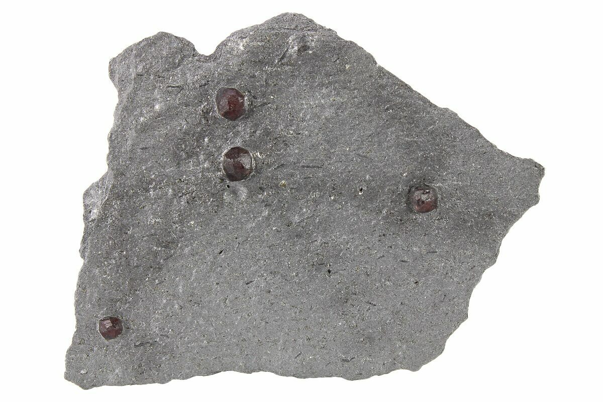 4.3" Plate of Four Red Embers Garnets in Graphite - Massachusetts
