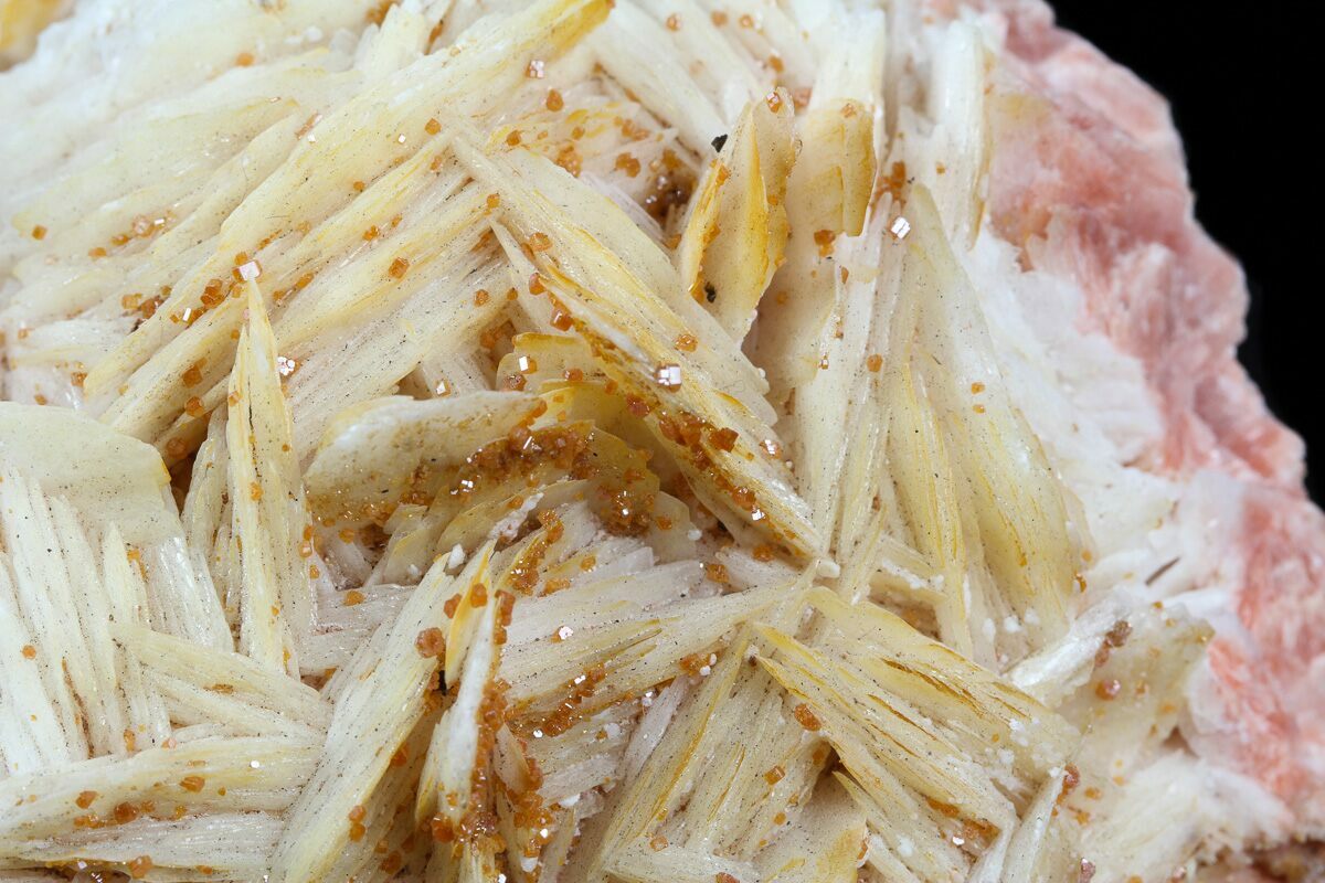 4.3" Small Vanadinite Crystals on Bladed Barite - Morocco