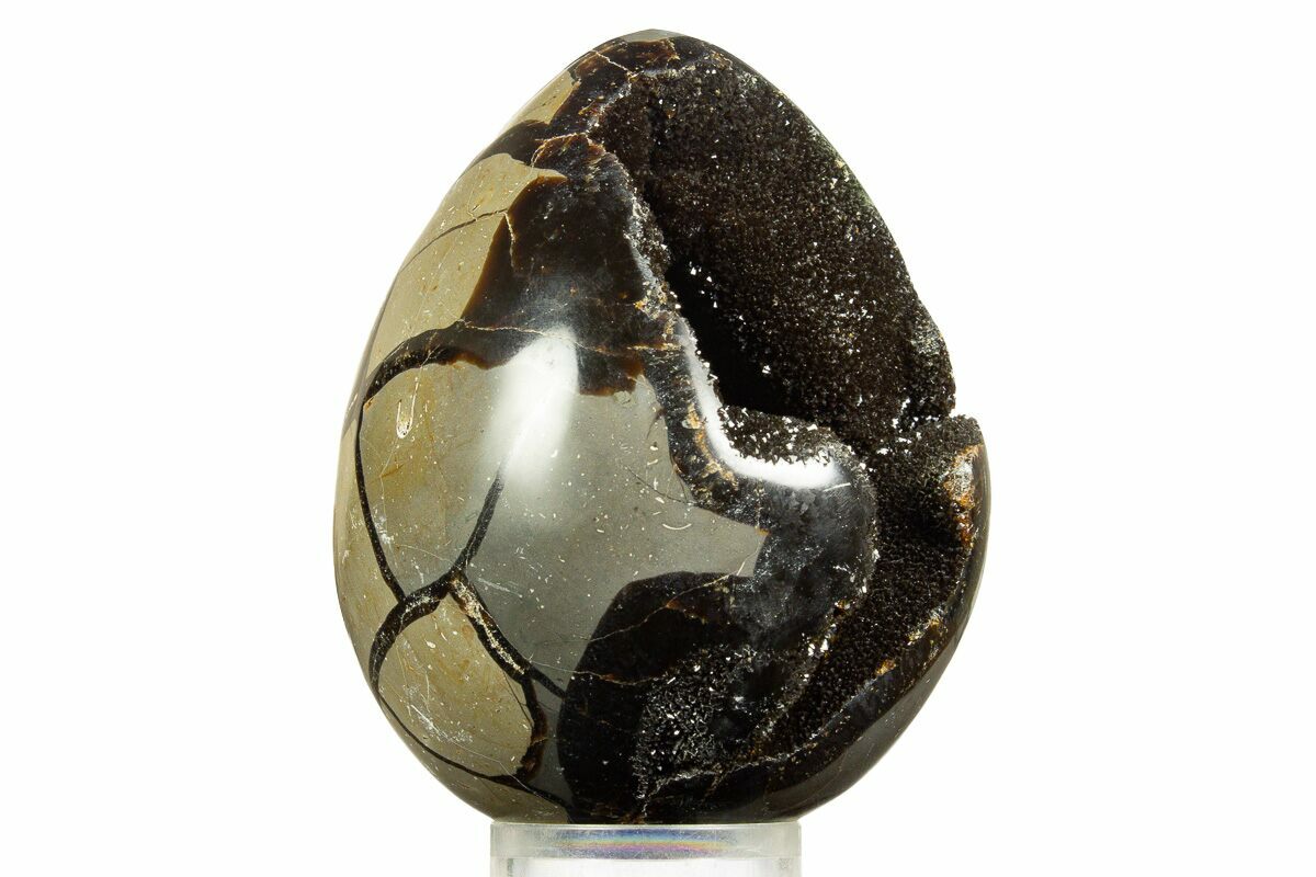 4.3" Septarian "Dragon Egg" Geode - Sparkly Black Crystals