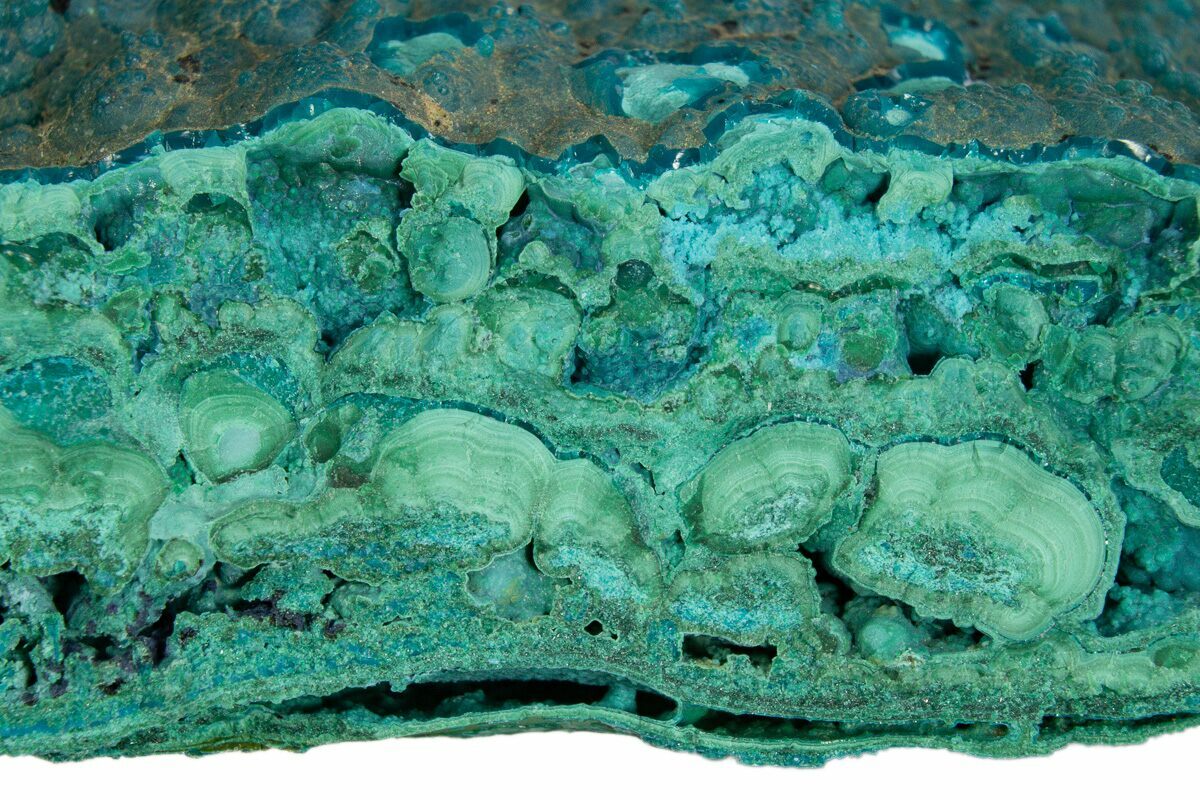 Malachite results from the weathering of other copper ores, and is very often found associated with other copper-based minerals such as azurite and chrysocolla. It can be found in copper deposits around the world, but the Democratic Republic of the Congo is the primary source for polished malachite and mineral specimens.