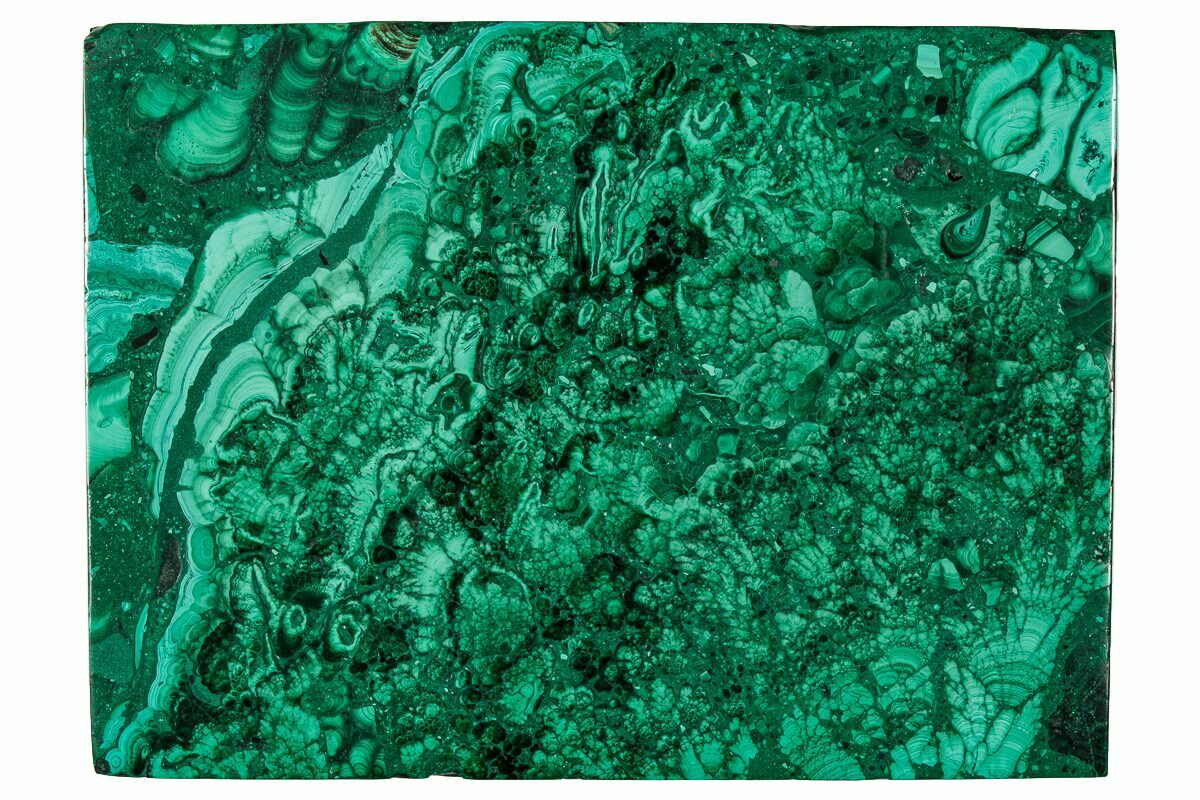 Malachite is an intense green copper-based mineral that can be found in a wide variety of forms. Malachite can grow in botryoidal masses, stalactitic formations, and reniform formations, typically as a tight cluster of fanning fibrous needles that make up a seemingly solid mass. As layers continue to stack during formation, banded patterns can sometimes begin to take shape, explaining the rings in all shades of green seen on most polished malachite specimens.