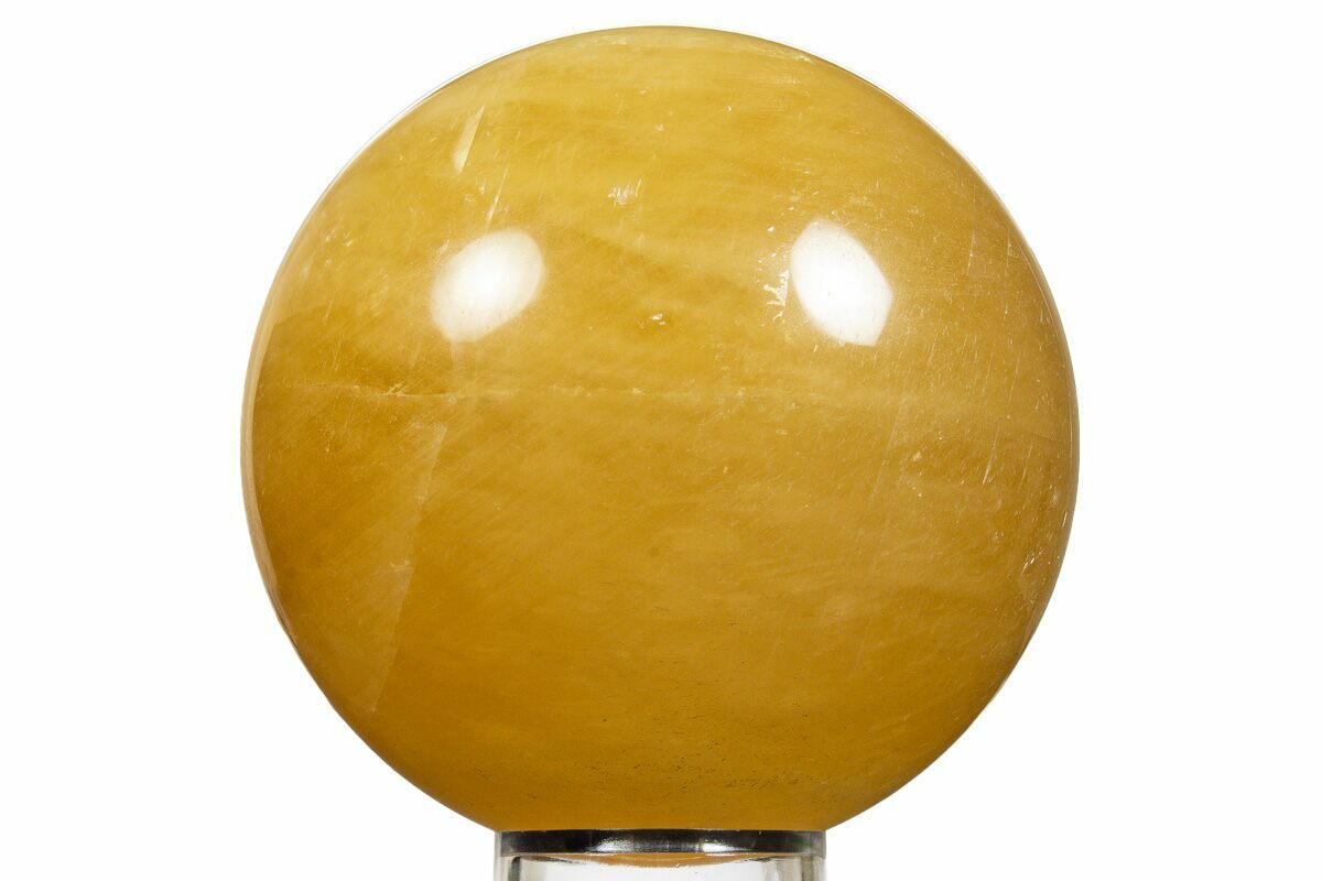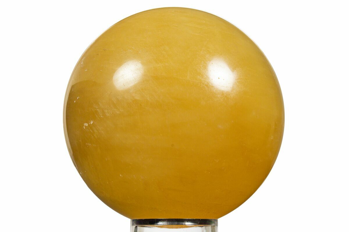 This is a gorgeous, 4.4" wide sphere crafted from a massive formation of honey calcite. The specimen is especially stunning when backlit.
