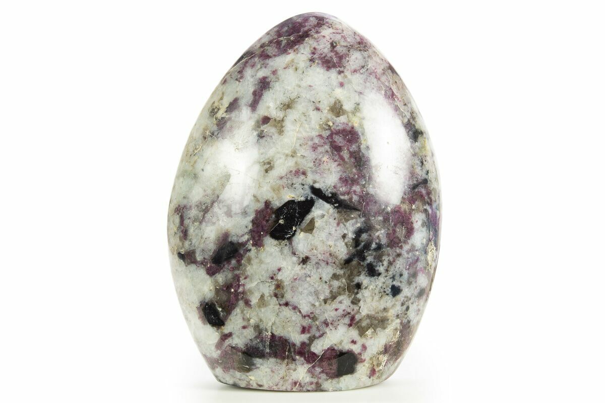 This is a 4.5" tall, hand polished sculpture made from pink tourmaline (rubellite) in quartz. This rock formation was collected from Madagascar.