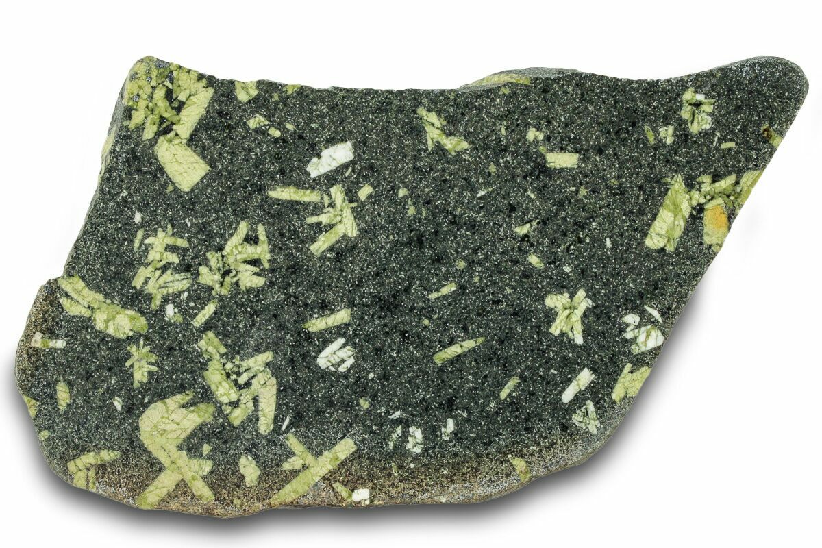 Chinese writing rock, also known as Chinese writing stone, is a lapidary material that is named for its resemblance to Chinese characters. It's composition is porphyritic basalt, or porphyry, that features groups of plagioclase feldspar crystals in a black basalt matrix.