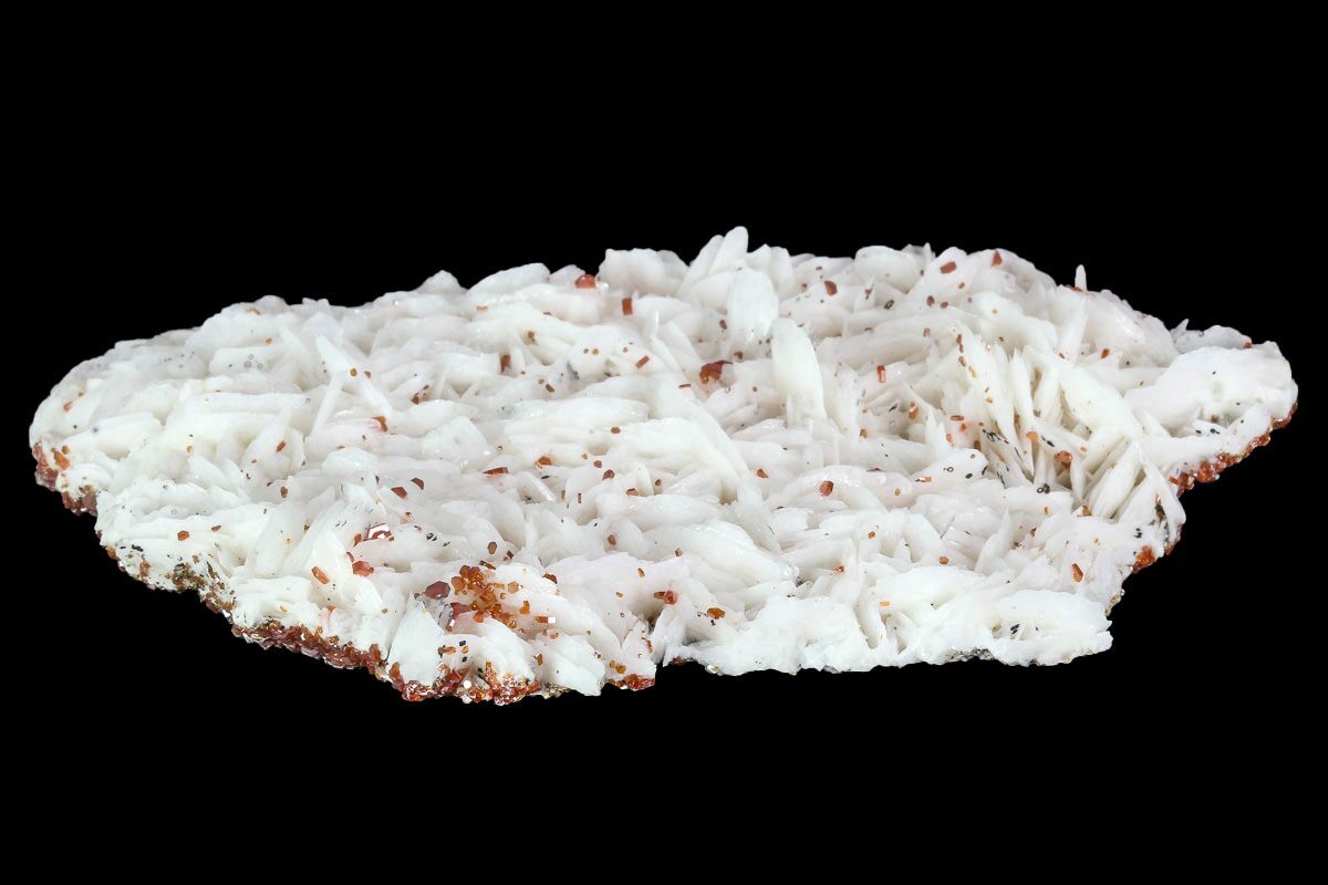 This is a beautiful plate of sparkling, ruby-red vanadinite crystals on white bladed barite matrix from Mibladen, Morocco. This stunning piece is an impressive 4.5" wide and contains several small, lustrous vanadinite crystals.