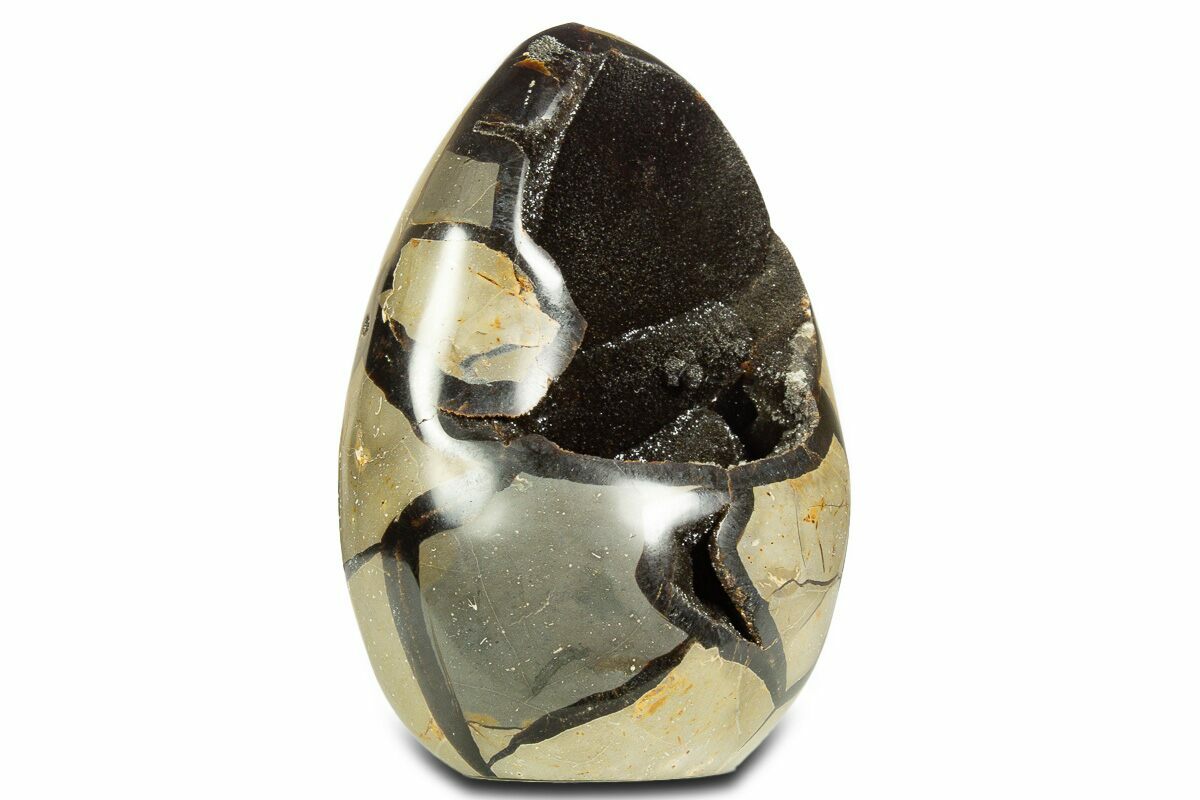 4.6" Free-Standing, Polished Septarian Geode - Black Crystals