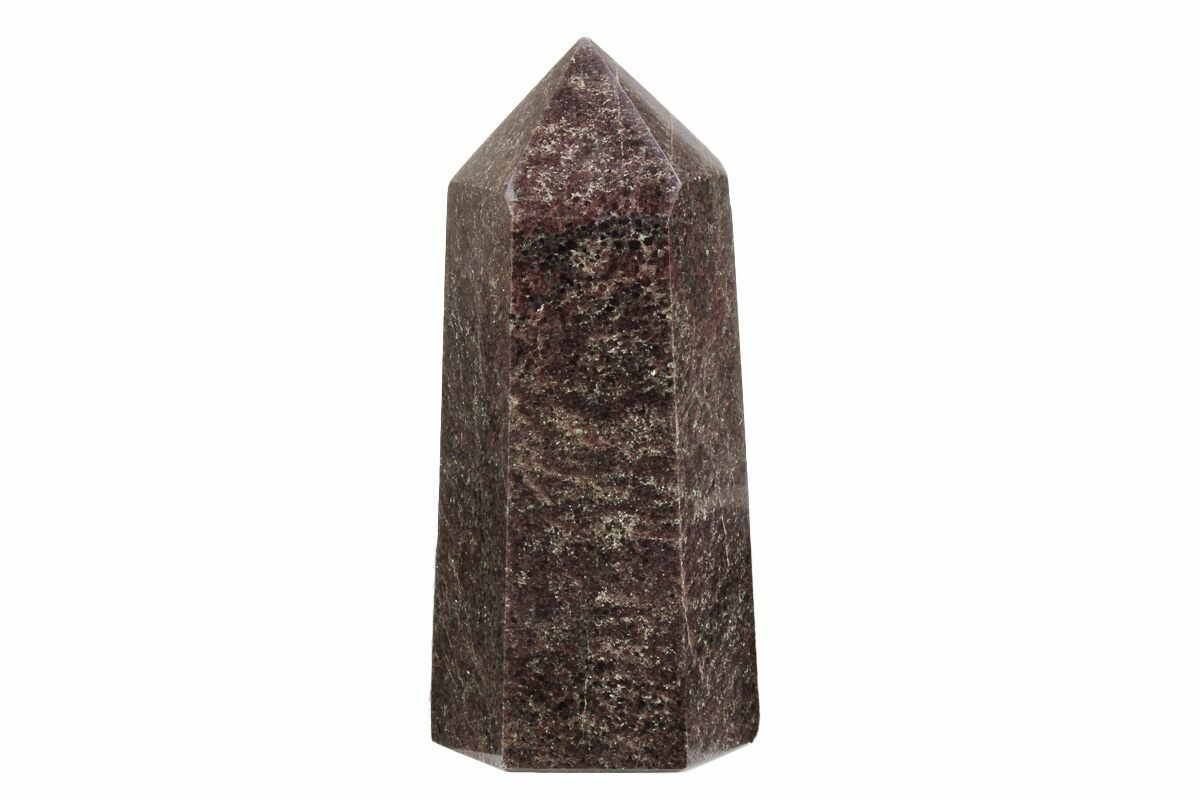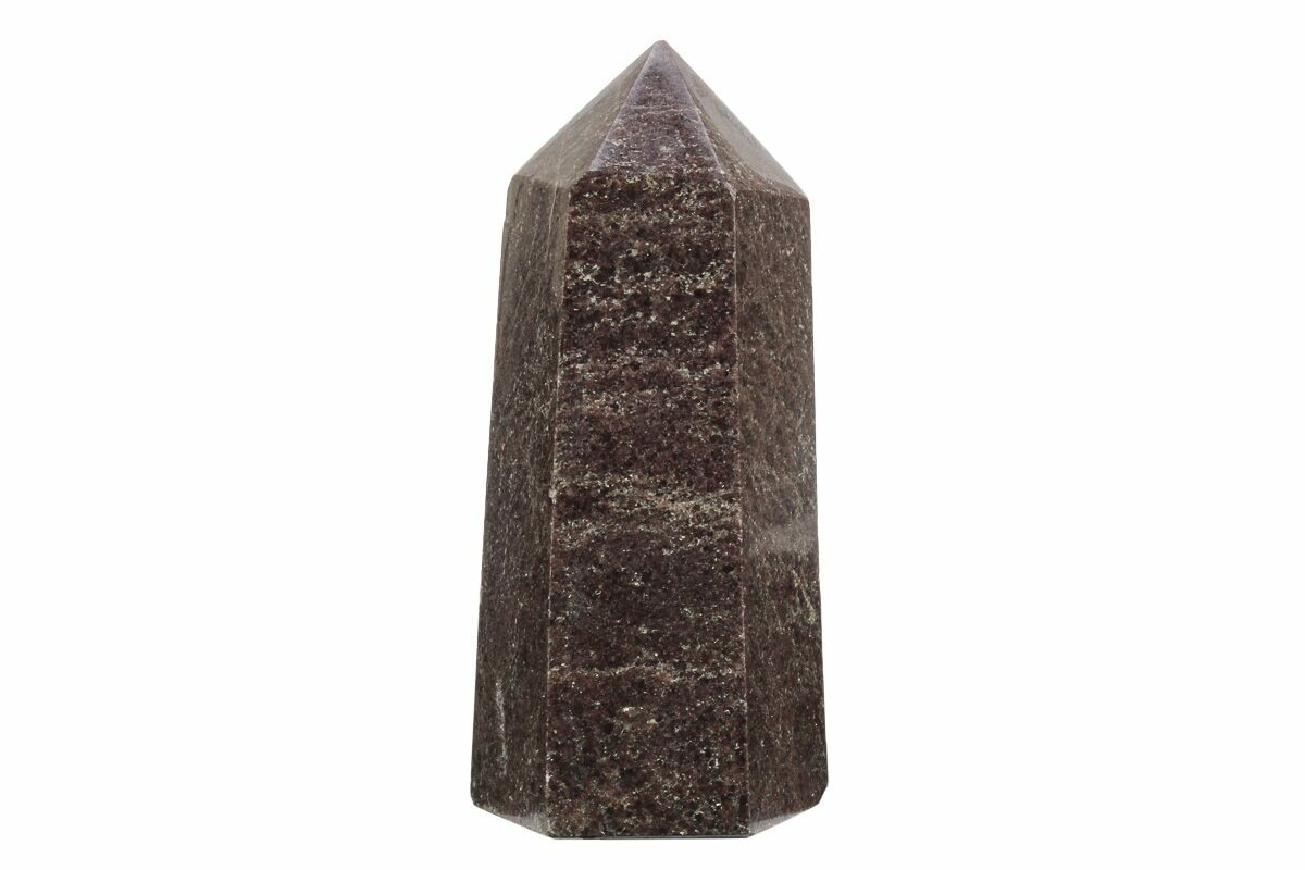 This is a 4.6" tall section of garnetite that has been polished into the shape of a six sided tower. The base of the specimen has been cut flat for presentation and the entire specimen is polished to a glossy finish.