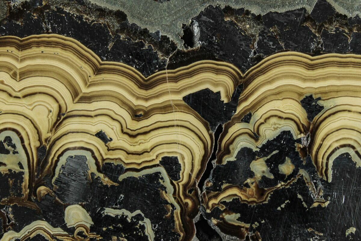 This particular specimen was mined out of the Pomorzany Mine in Olkusz, Poland and contains a beautiful combination of sphalerite, marcasite, and galena. It has been cut flat and polished to a glossy finish on one side and is accompanied by an acrylic display stand.