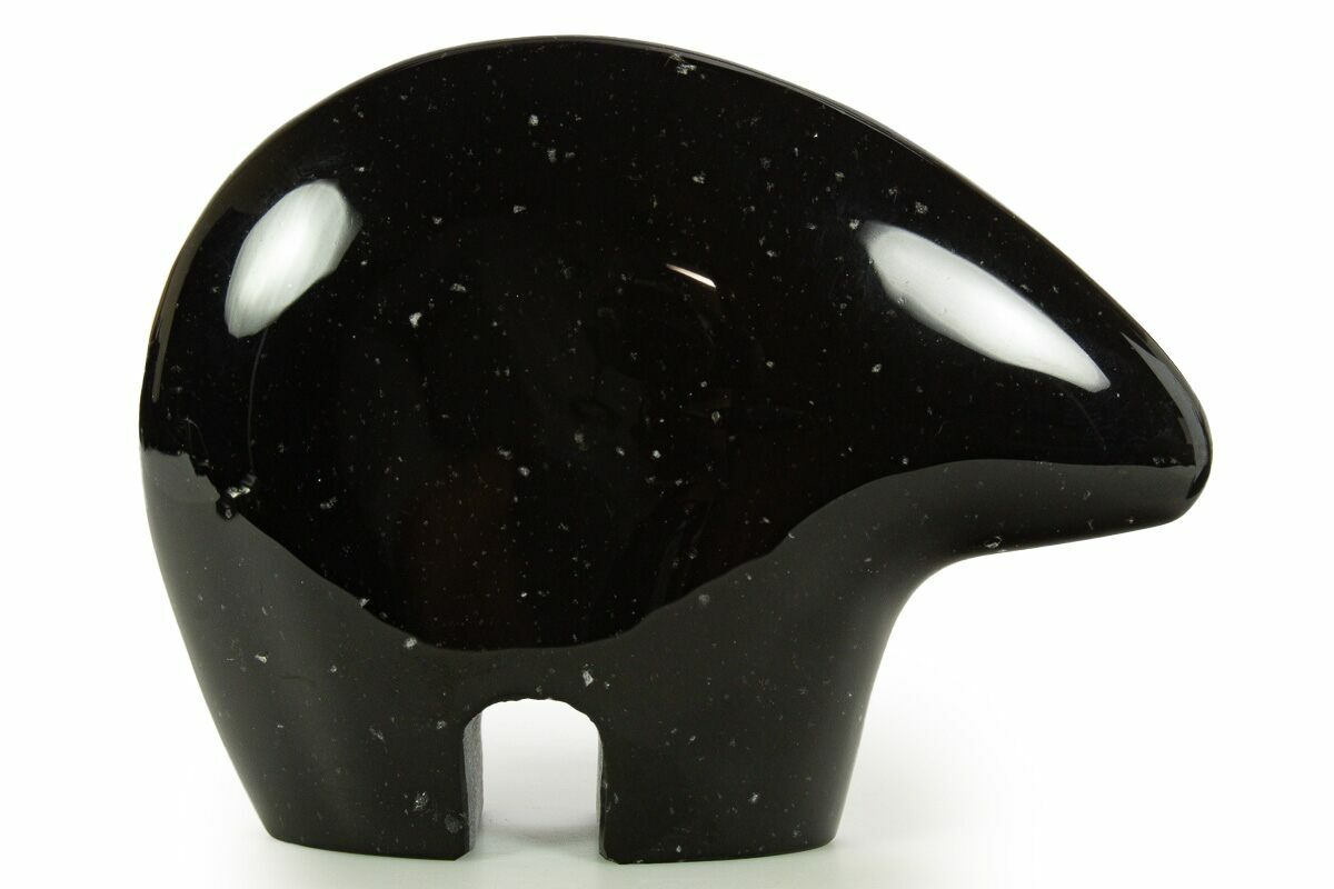 This is a 4.7" long hand-carved Zuni bearfashioned from a black basalt collected in California. It displays nicely sitting on a hard surface.