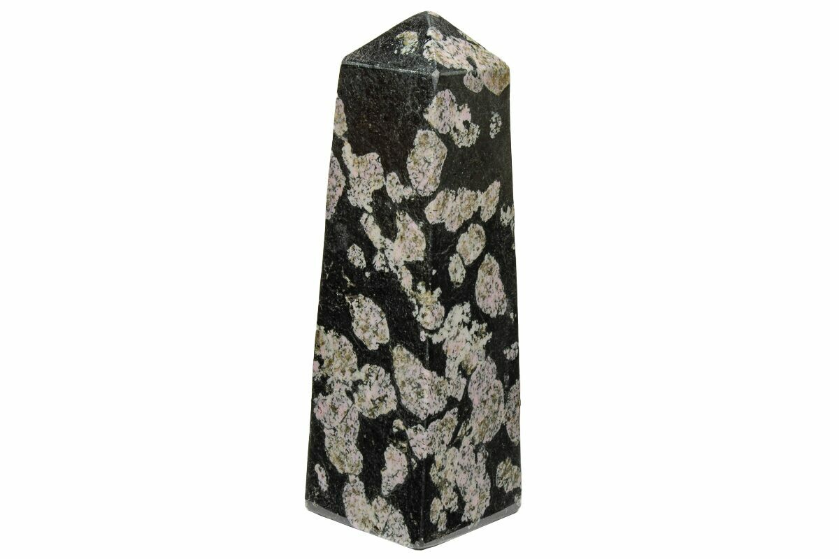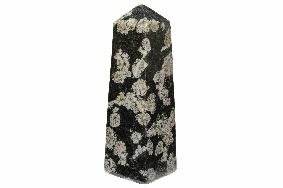 This is a 4.7" tall polished obelisk (tower) made from Pakistan snowflake stone