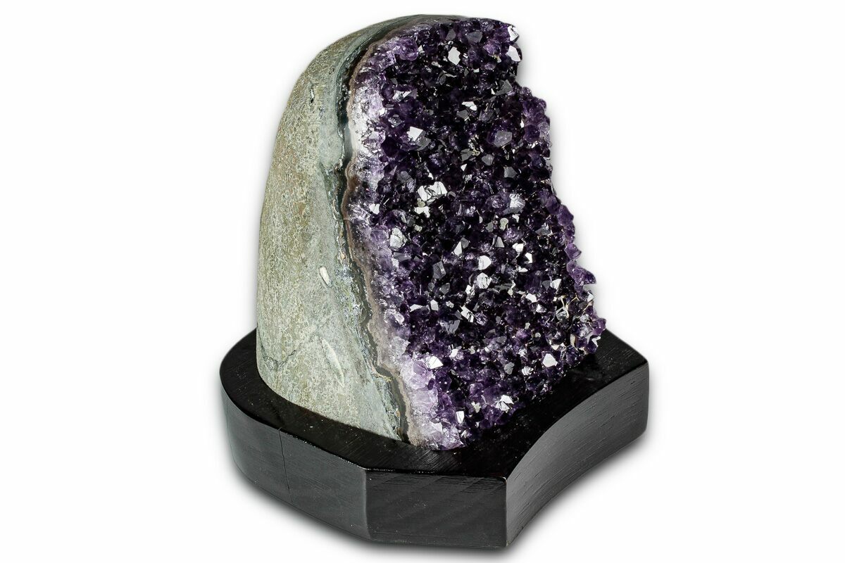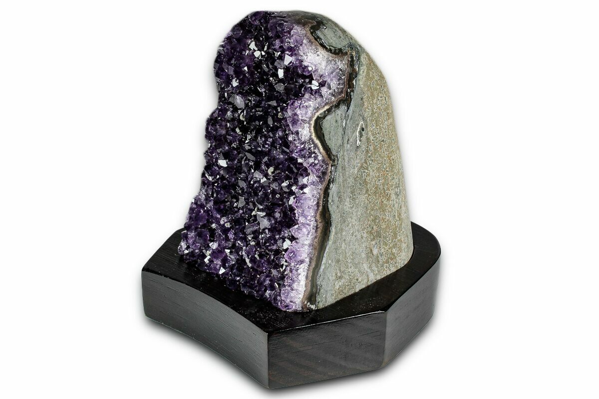 4.75" Deep Purple Amethyst Geode With Wood Base - Uruguay