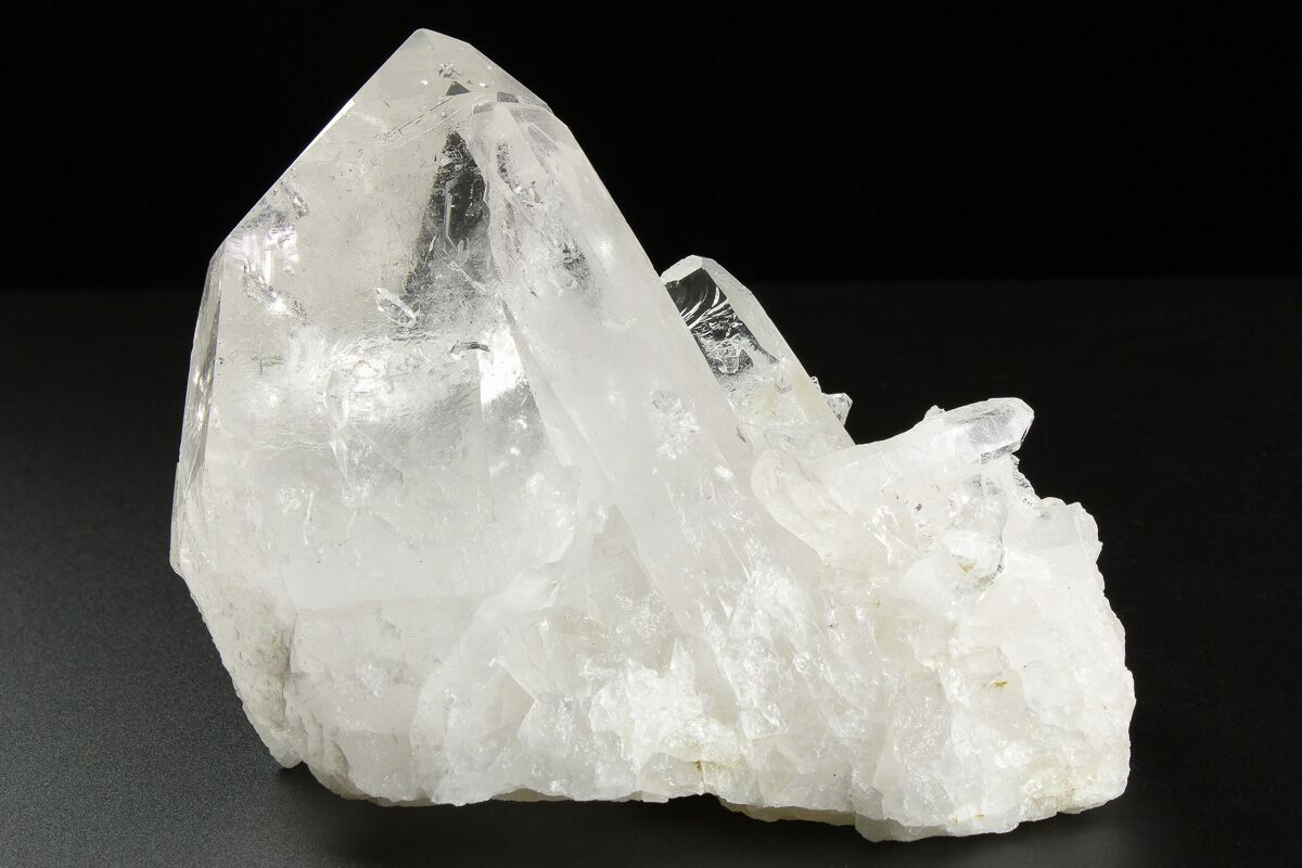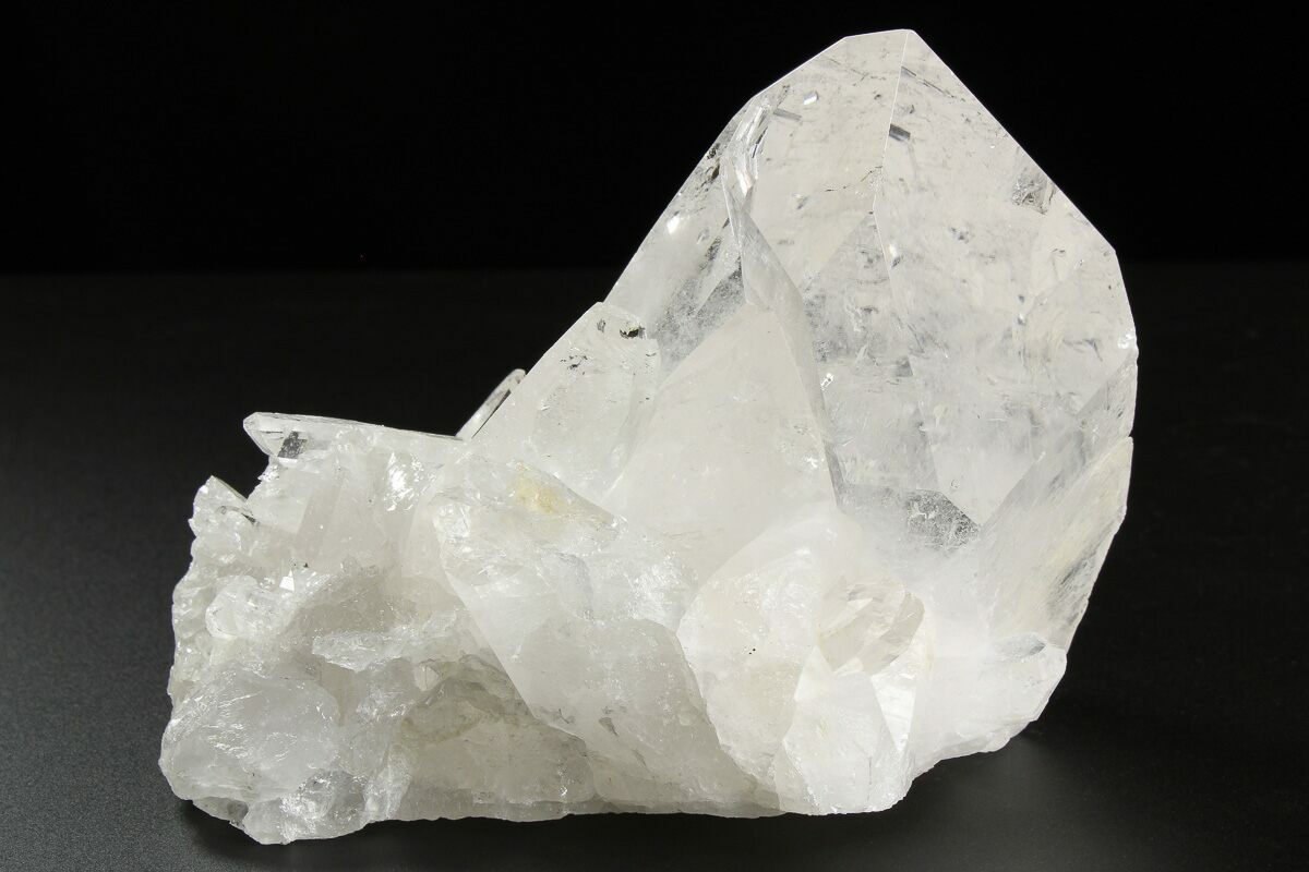 This is a 4.8" wide cluster of high-quality quartz crystals from Minas Gerais, Brazil. The clarity of this quartz is spectacular. Some faces have been polished to reveal the stunning clarity and structures of these crystals.