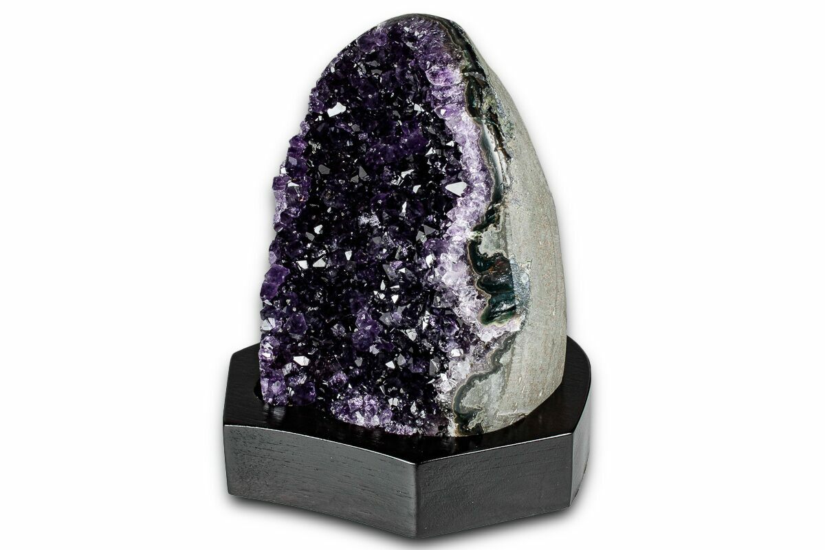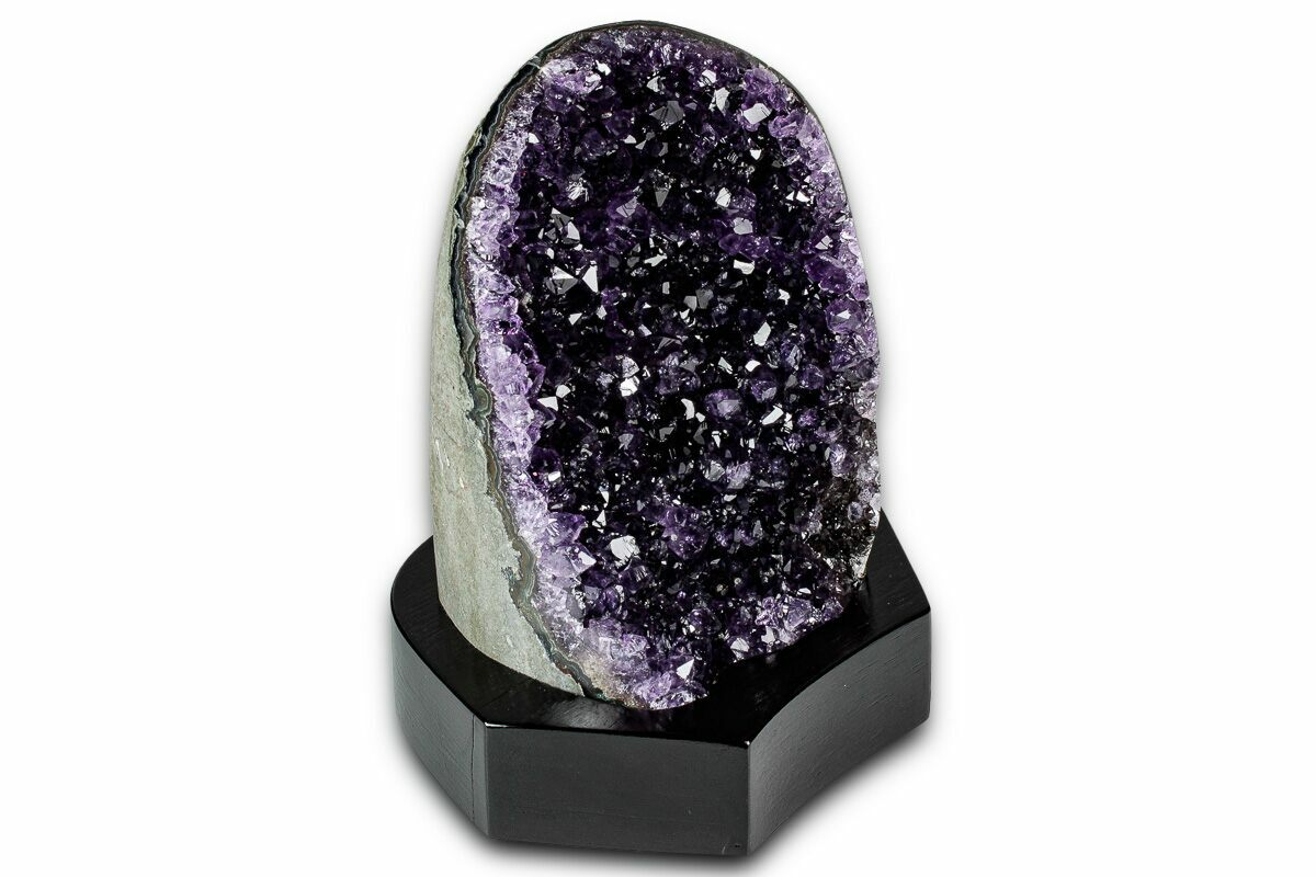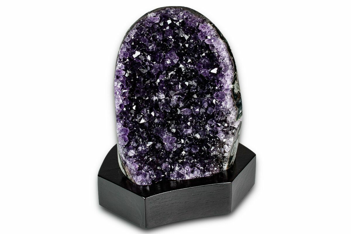 4.8" Deep Purple Amethyst Geode With Wood Base - Uruguay