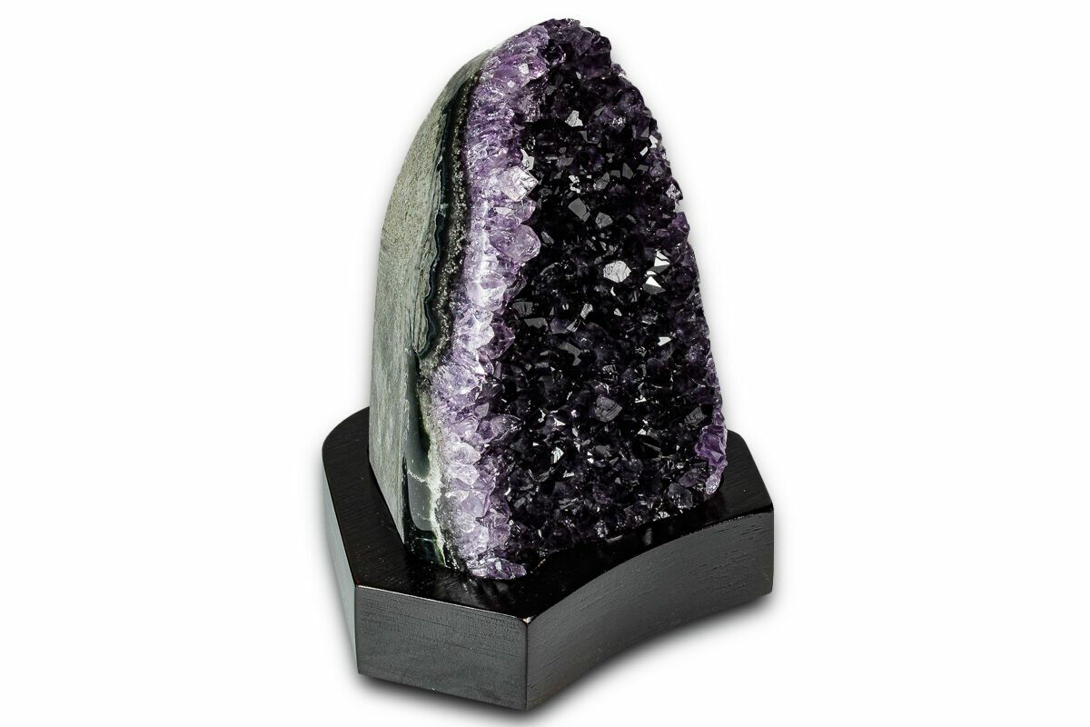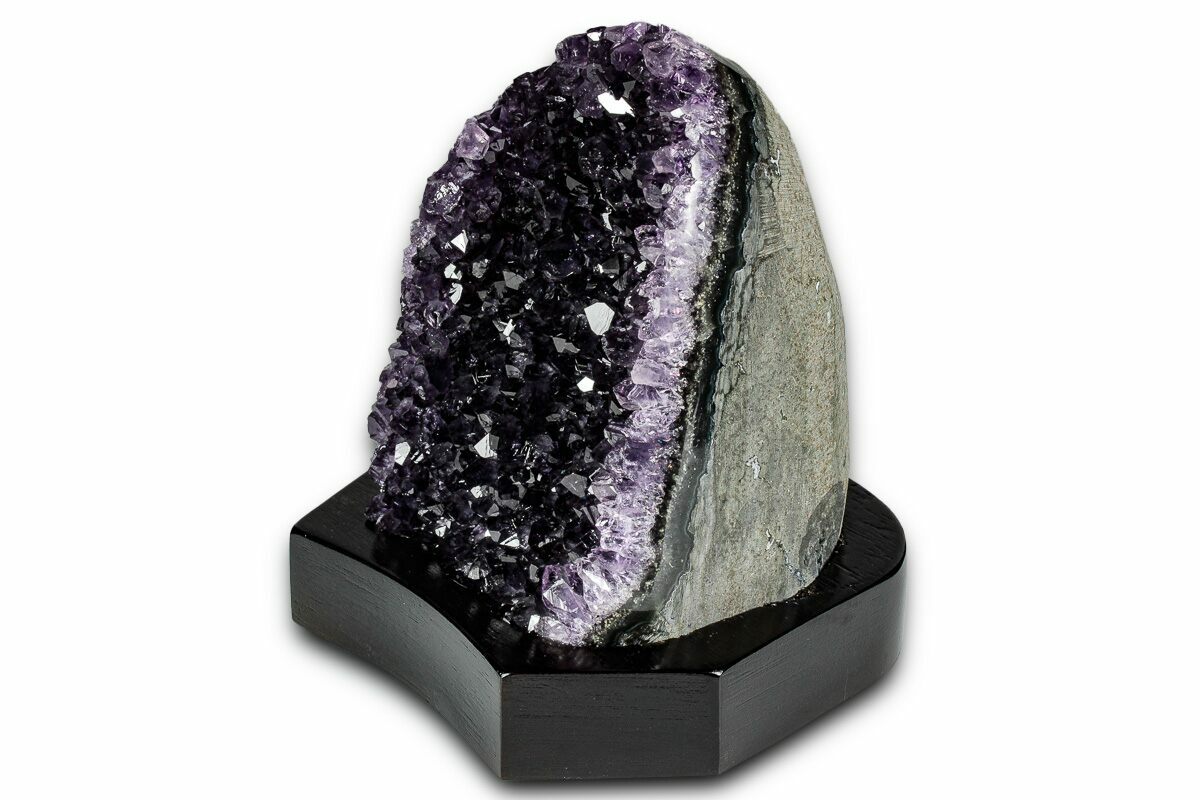 4.8" Deep Purple Amethyst Geode With Wood Base - Uruguay