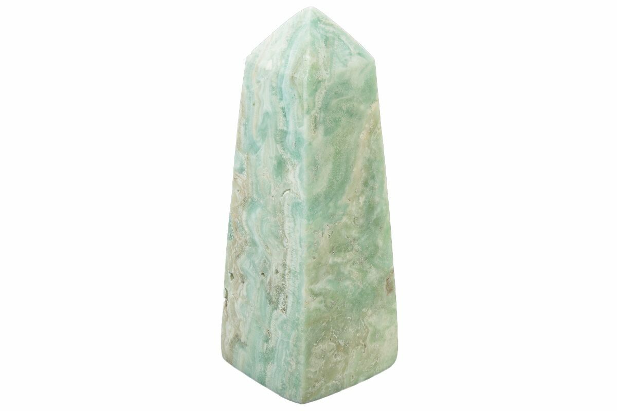 This is a 4.8" tall obelisk (tower) made from blue Caribbean calcite that was collected from the Balochistan Province along the border of Pakistan and Afghanistan. The entire specimen has been polished to a glossy finish with a flat cut base.