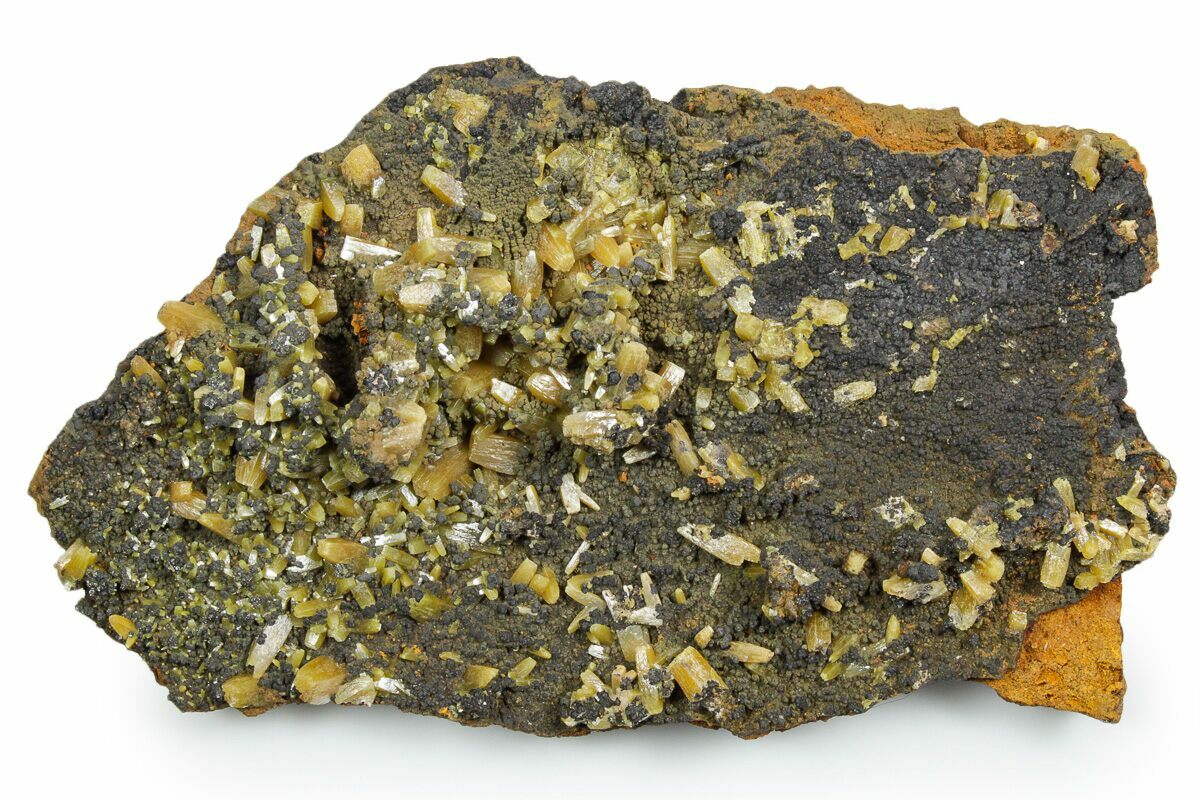 Wulfenite is a lead-based molybdate mineral with a chemical formula Pb(MoO4). It forms as a secondary mineral in the oxidation zones of hydrothermal lead deposits, its color ranging anywhere between yellow to bright orange and red and occasionally brown. Typically forming as tabular, stubby, or pyramidal crystals, this unique mineral can be both brilliantly transparent and opaque.