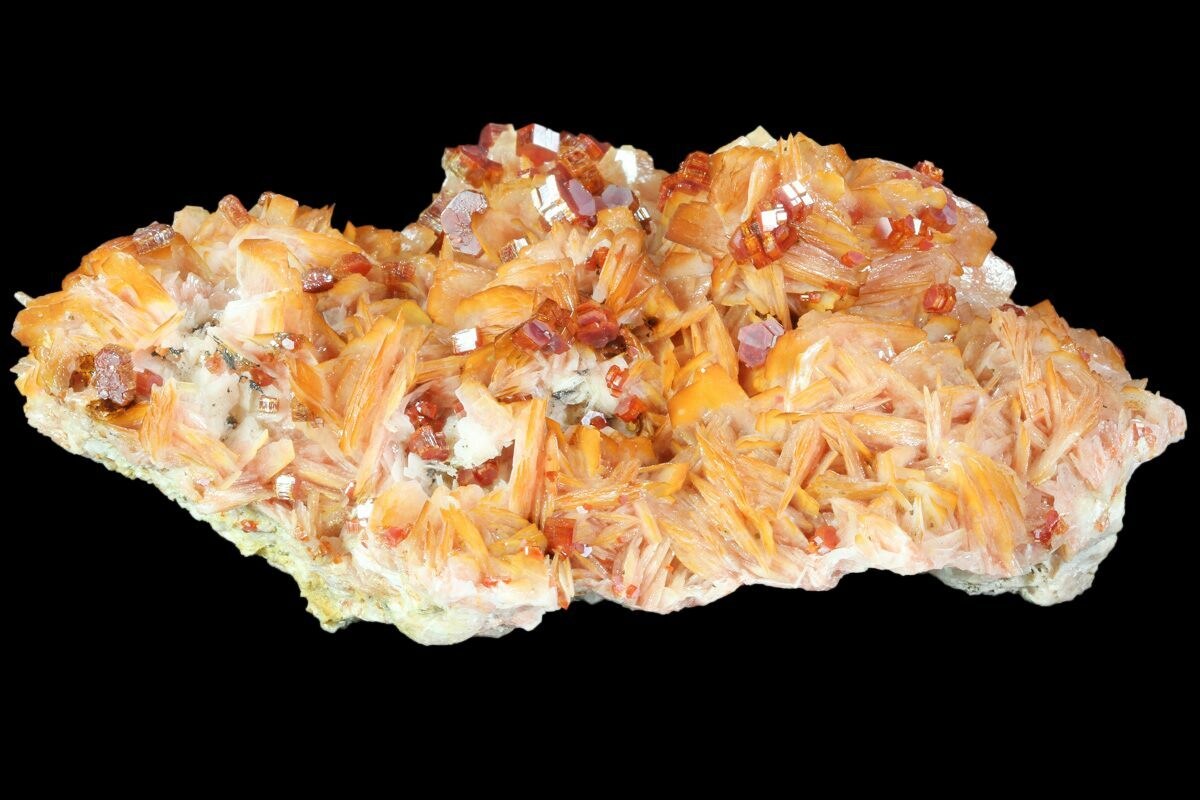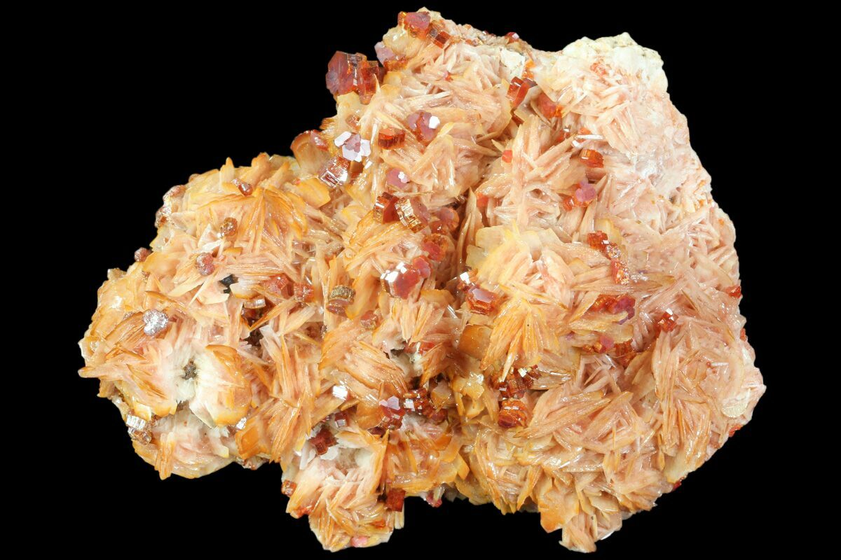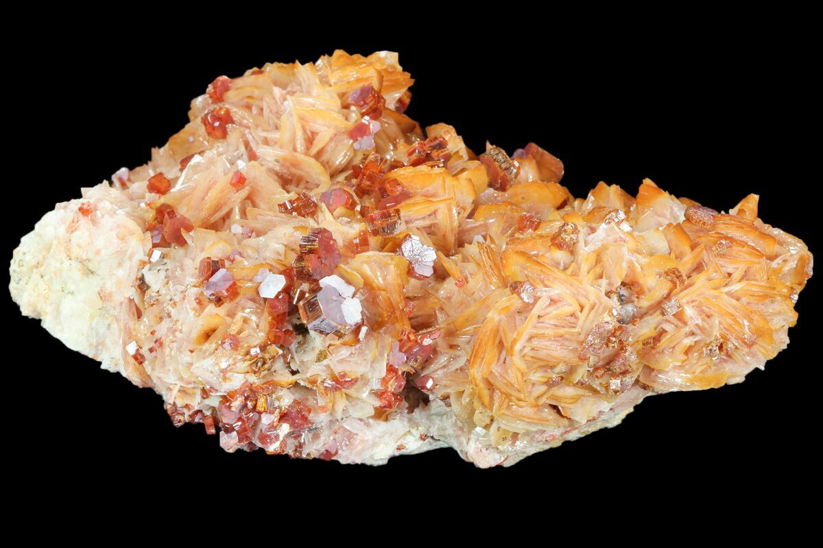 4.8" Ruby Red Vanadinite Crystals on Pink/Orange Barite - Morocco