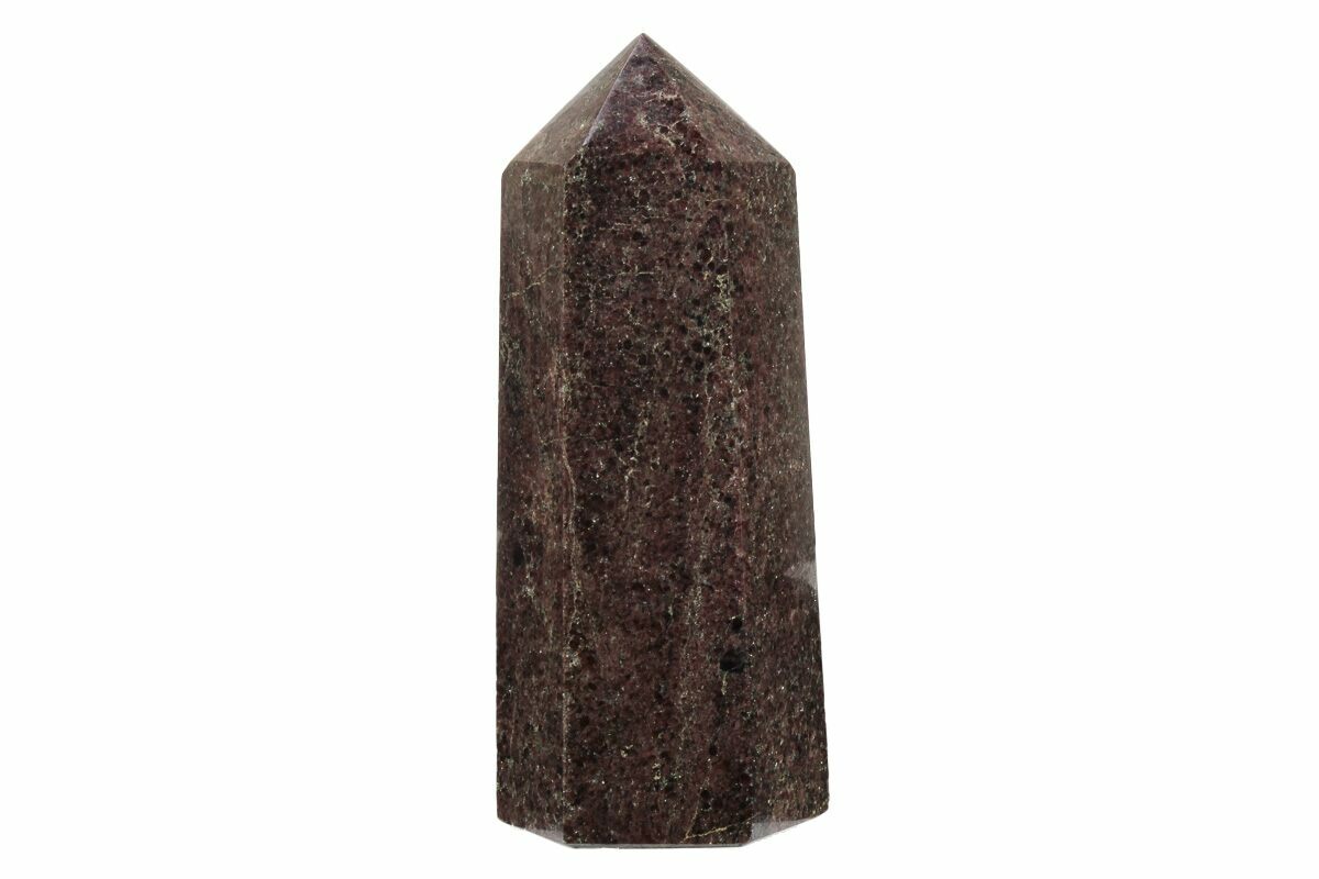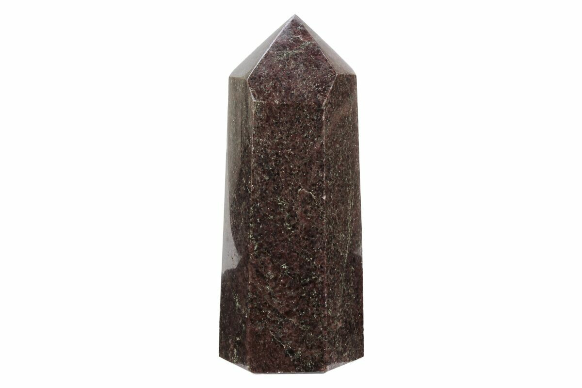 This is a 4.9" tall section of garnetite that has been polished into the shape of a six sided tower. The base of the specimen has been cut flat for presentation and the entire specimen is polished to a glossy finish.