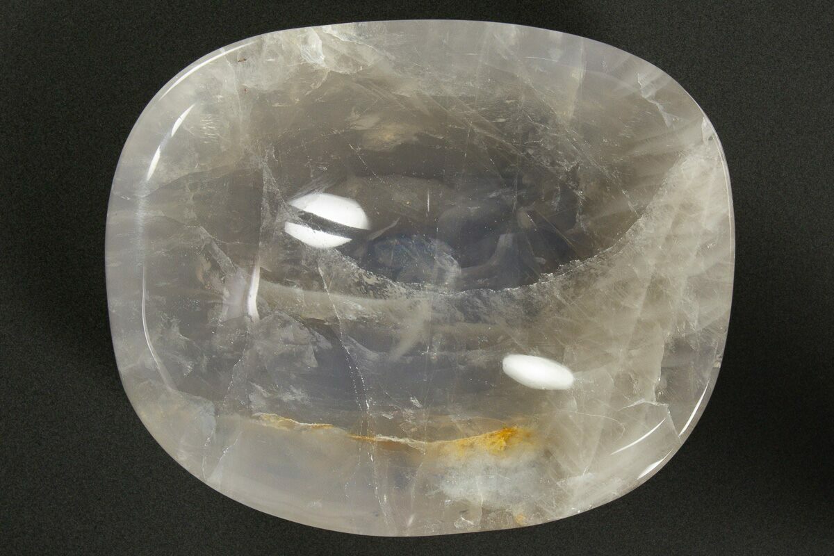 This is a gorgeous, 5" wide, polished quartz bowl/dish. It has been hand carved/polished out of a solid piece of quartz crystal. This dish has a mixture of rose quartz and smoky quartz coloration.