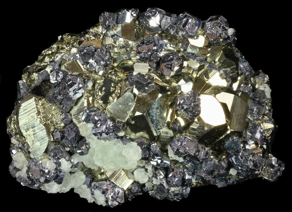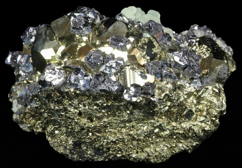 4" Gleaming Pyrite With Galena and Calcite Crystals - Peru