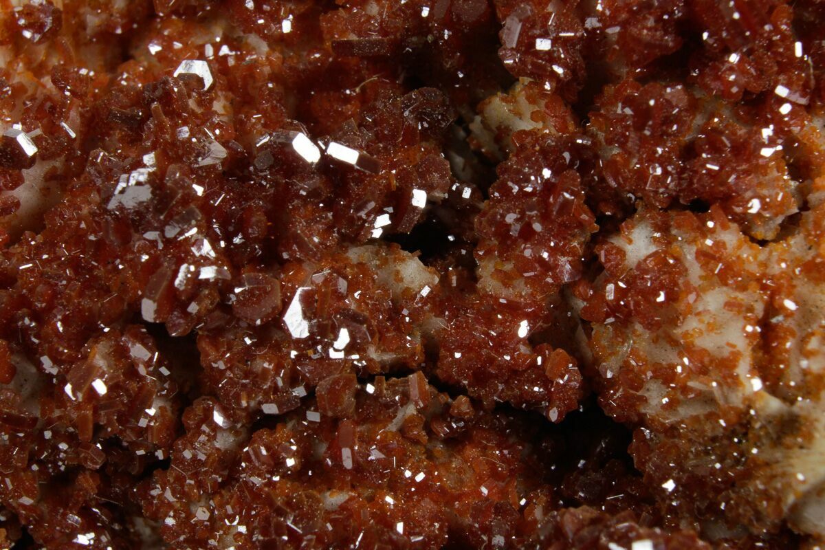 Vanadinite from Morocco is world-famous for producing some of the finest red crystal specimens on the planet. In the arid hills surrounding Mibladen and Taouz, vanadinite forms as vibrant clusters of hexagonal prisms, often with a deep crimson to orange-red color that seems to glow against the pale desert matrix. These crystals typically develop in dense groups, coating barite blades or covering weathered limestone with dazzling, glassy faces and sharp geometric symmetry. The dryness of the region and the slow oxidation of ancient lead deposits create the perfect geochemical environment for vanadinite to grow with exceptional clarity, luster, and intensity of color. Moroccan vanadinite is highly prized by collectors for its bold aesthetics, architectural crystal formations, and the consistent quality that has made these localities the global benchmark for the species.