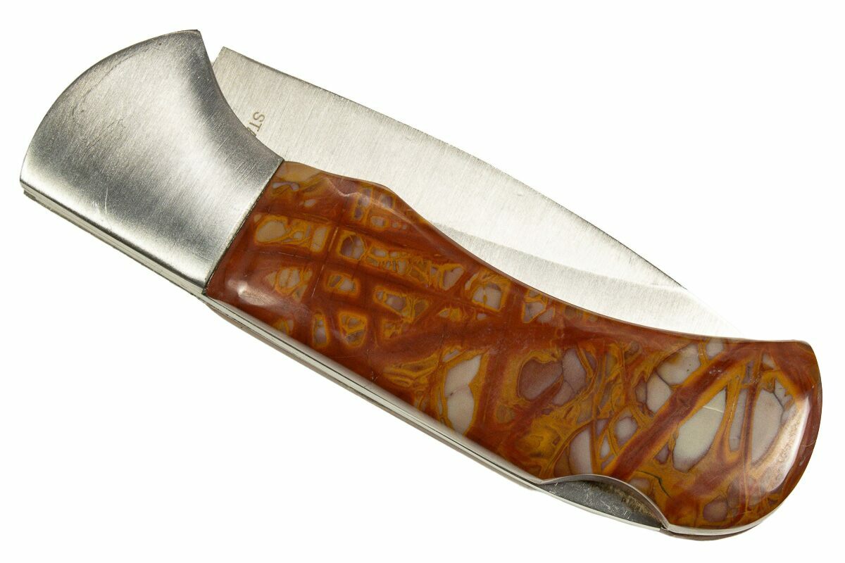 Measuring 4" when closed with a sharp 3" stainless steel blade, this knife is both practical and collectible. Its compact size, premium materials, and artistic design make it a perfect choice for those who appreciate fine craftsmanship and the natural beauty of jasper.